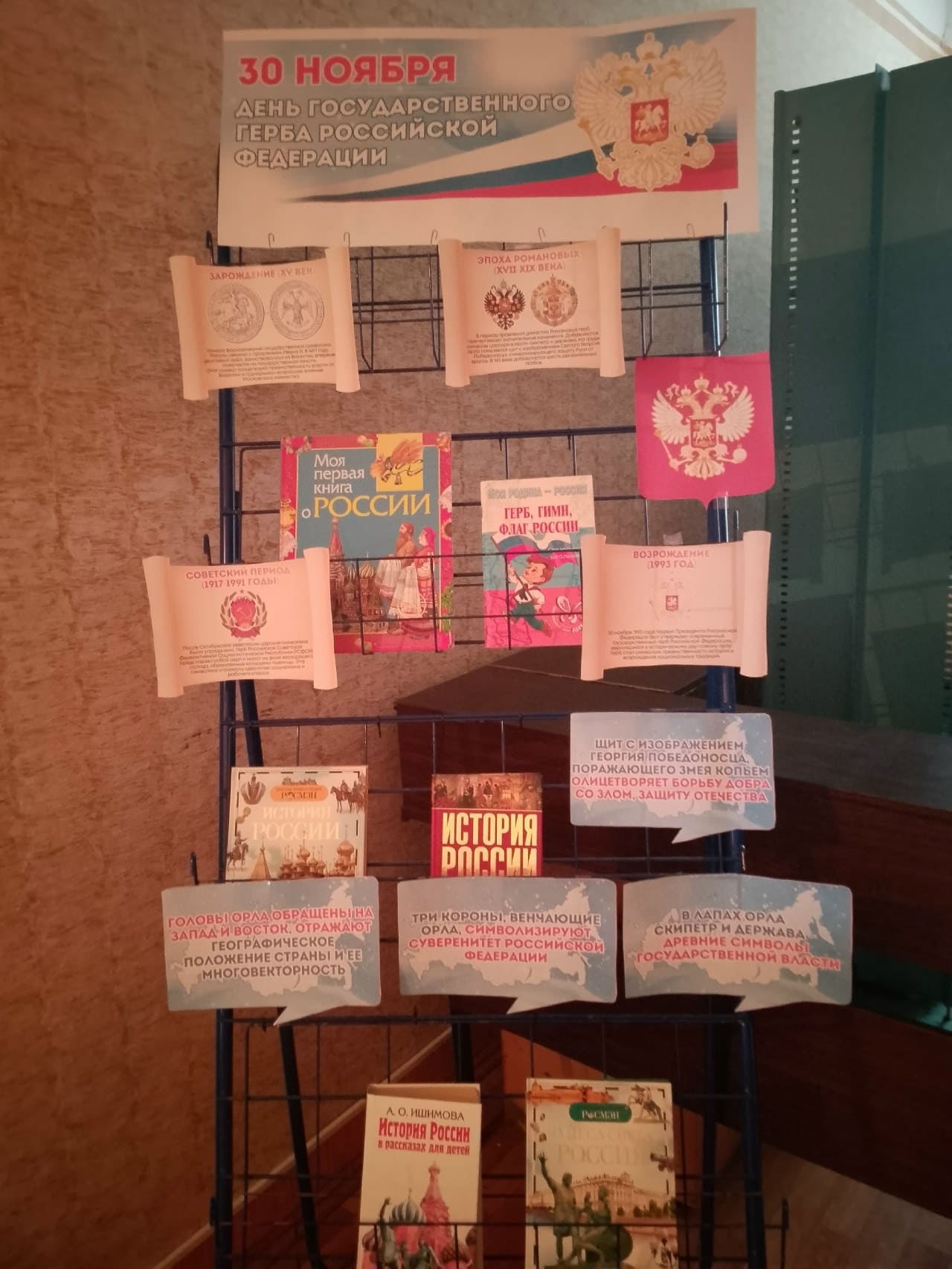 В рамках празднования в филиале МБУК “Межпоселенческая библиотека Тамбовского муниципального округа Тамбовской области” села Селезни оформлена книжно-иллюстрированная выставка «День государственного герба РФ».