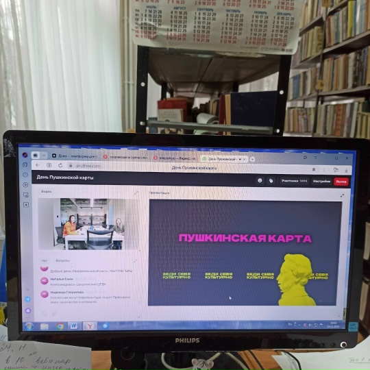 К онлайн-трансляции присоединилась заведующая отделом обслуживания Центральной библиотеки Марина Девицкая. Она внимательно изучила представленную информацию, чтобы понять, как максимально эффективно использовать возможности «Пушкинской карты» в 2026 году. Особое внимание было уделено новым возможностям и рекомендациям по планированию культурного досуга с помощью карты.