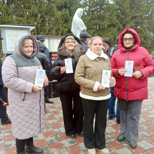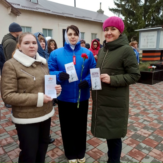 3 декабря библиотекарь Юлия Креминская провела акцию «Безымянные герои Великой войны», посвященную Дню Неизвестного Солдата. В рамках акции люди смогли узнать о подвигах солдат, чьи имена остались неизвестными, и отдать дань уважения их памяти. Специалист МБУК “ЦБ им. Ю. А. Ознобишина” рассказала о значении этого дня. В завершение акции участники почтили память погибших минутой молчания и возложили цветы к мемориалу “Скорбящая мать”.