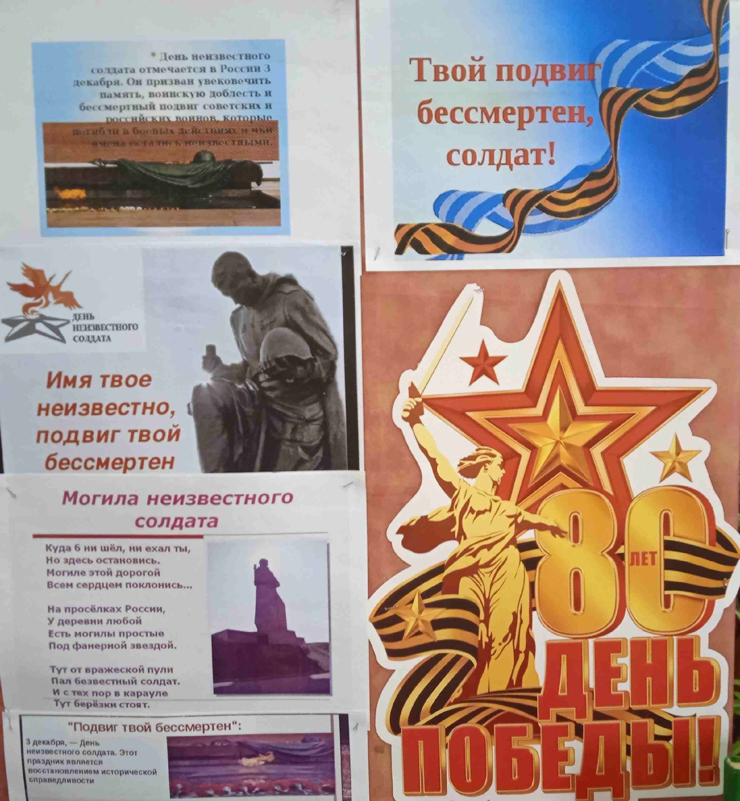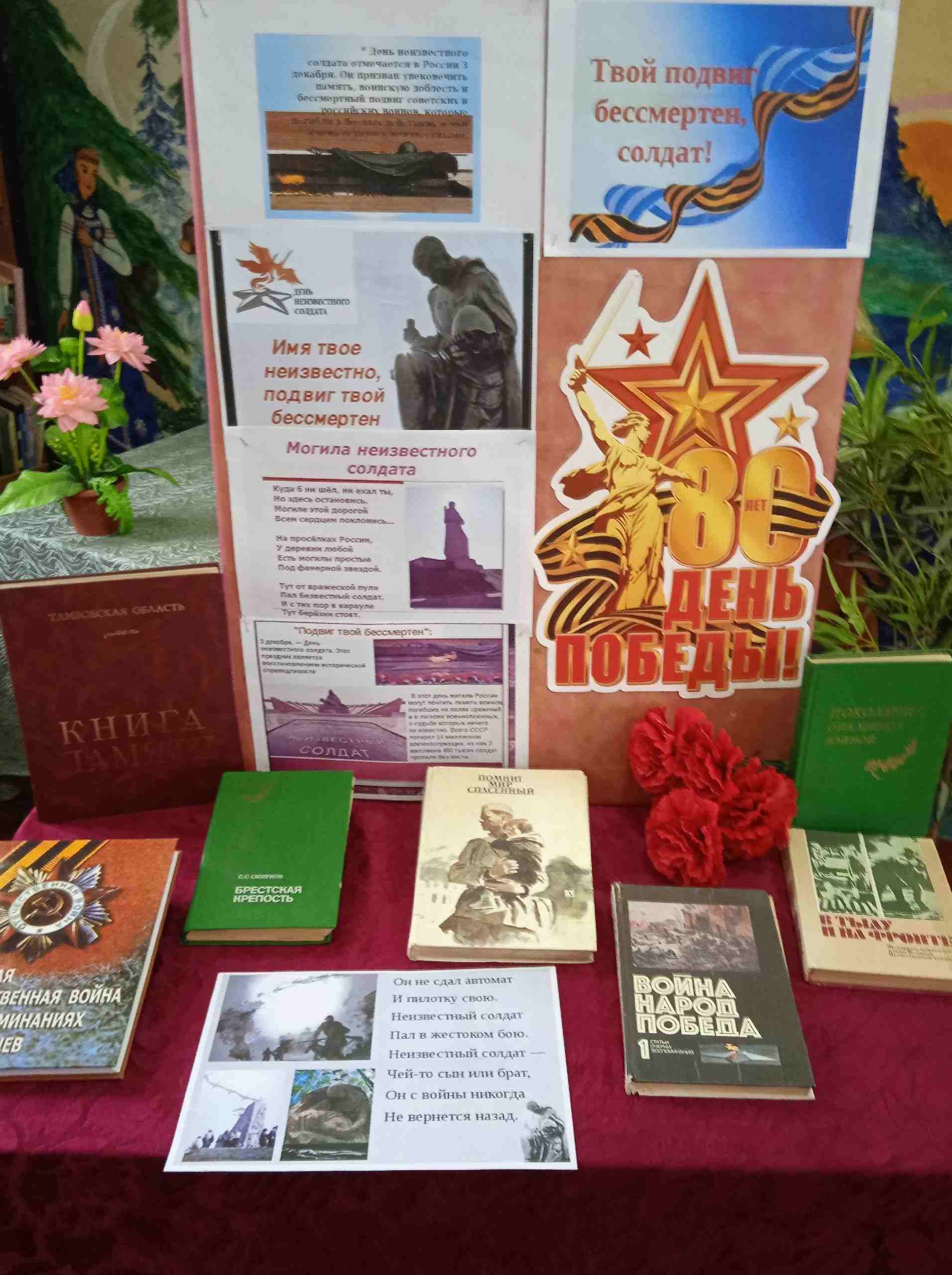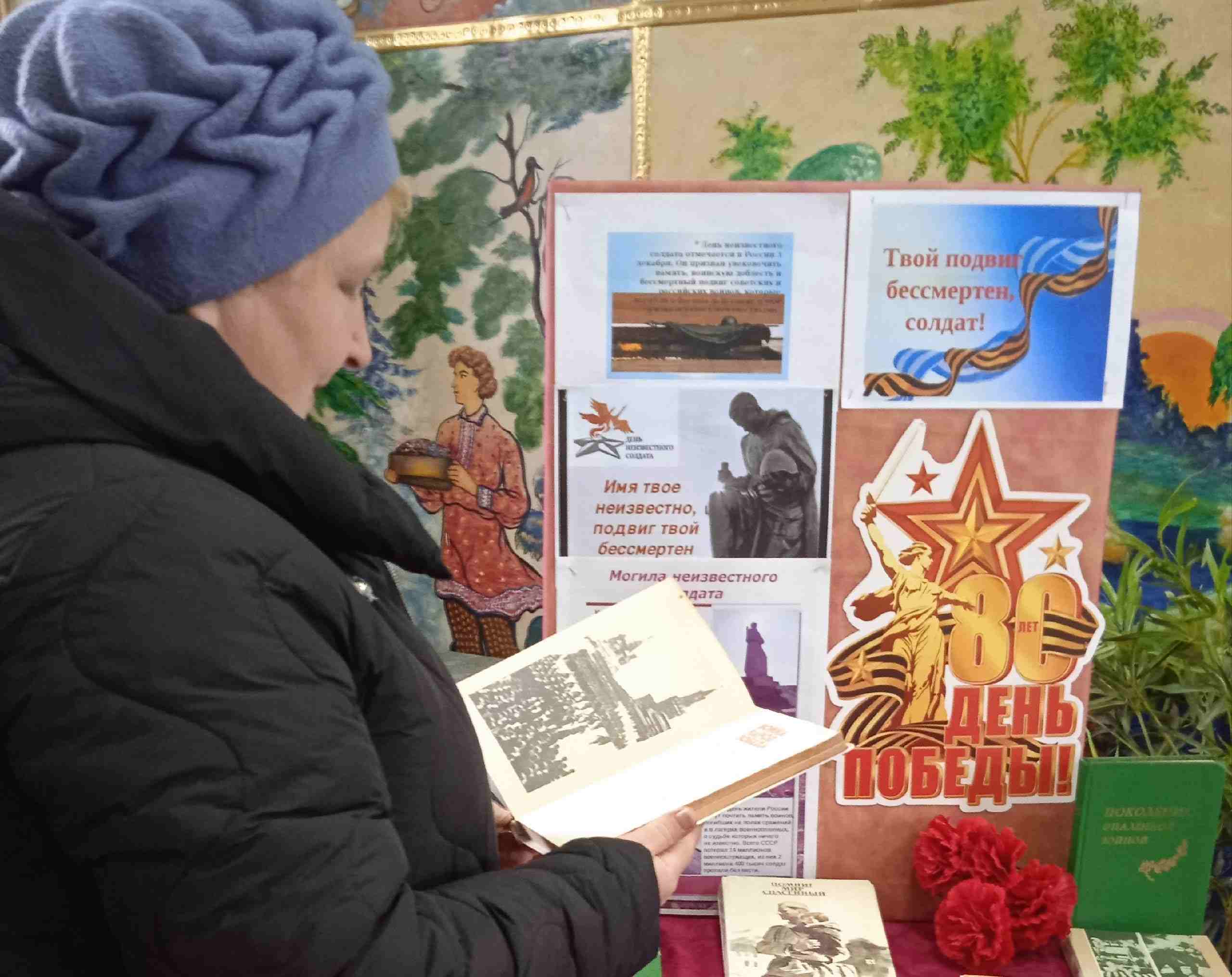 Ко Дню Неизвестного солдата, который отмечается 3 декабря, в Садостроевском сельском филиале оформлена выставка- память “Твой подвиг бессмертен, солдат!”