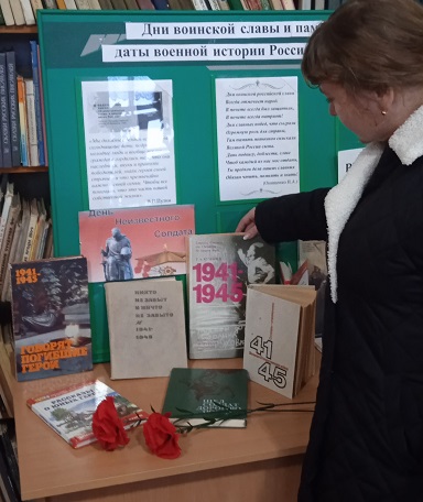 К этой дате в МБУК «БКМО» прошел информационный час «Имя твое неизвестно, подвиг твой бессмертен». Библиотекарь Жаркова А.В. рассказала, что главная цель памятного дня – увековечить подвиги всех бойцов, которые пали в боях за Родину во время Великой Отечественной войны и других вооруженных конфликтов, но остались неизвестными по сей день. Было отмечено, что история хранит множество имен героев, но есть одно, особенное имя – имя Неизвестного солдата, которое стало символом всех безымянных героев, погибших в атаках за безымянные высоты или до последнего патрона дравшихся в безызвестных окопах. В ходе беседы посетители библиотеки вспоминали рассказы своих старших родственников о войне, о без вести пропавших воинах – участниках Великой Отечественной войны, имена и место гибели, которых еще предстоит установить. В завершении мероприятия, присутствующие познакомились с иллюстрированной книжной выставкой, на которой представлена информация по обсуждаемой теме, в том числе и такие цифры: