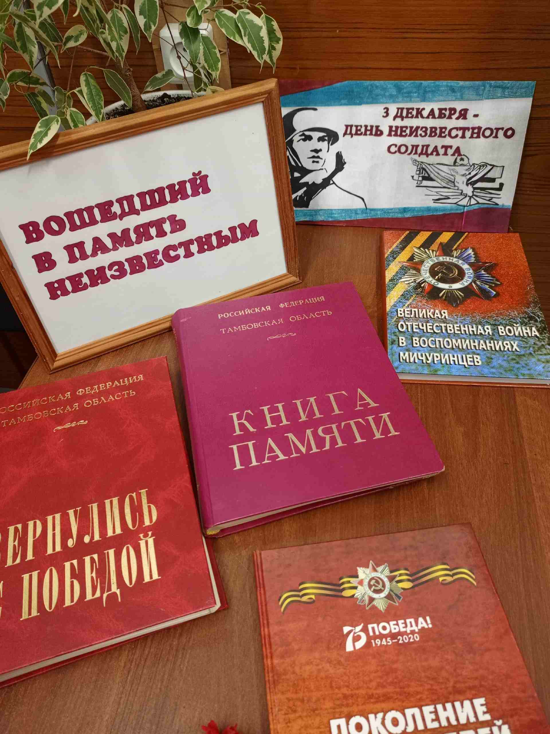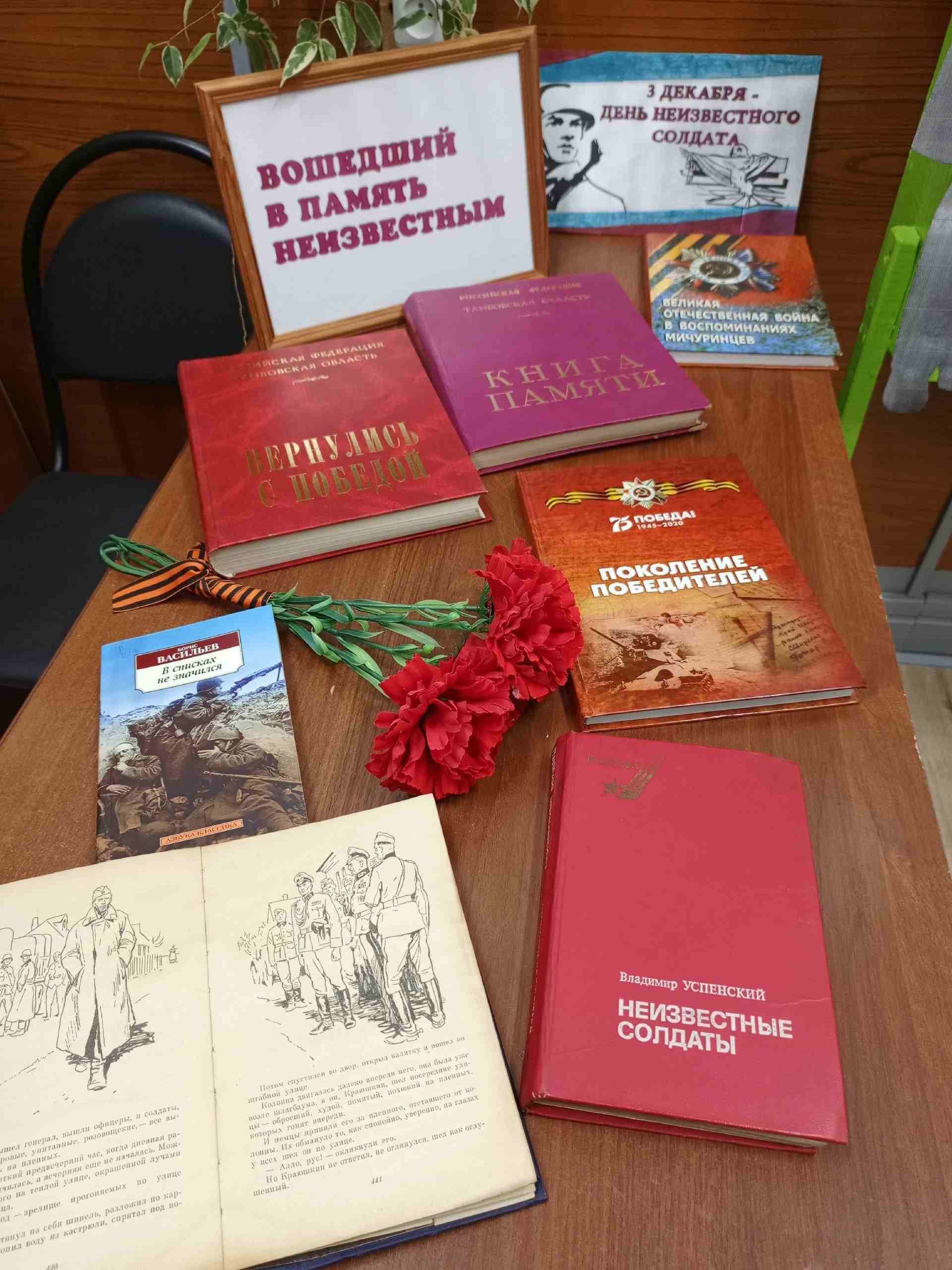 В преддверии праздника в Зеленогайском филиале оформлена книжная выставка “Вошедший в память неизвестным”. Читатели и гости библиотеки смогут ознакомиться с книгами о Великой Отечественной войне – художественной литературой, документальными свидетельствами, рассказывающими о подвигах безымянных героев.