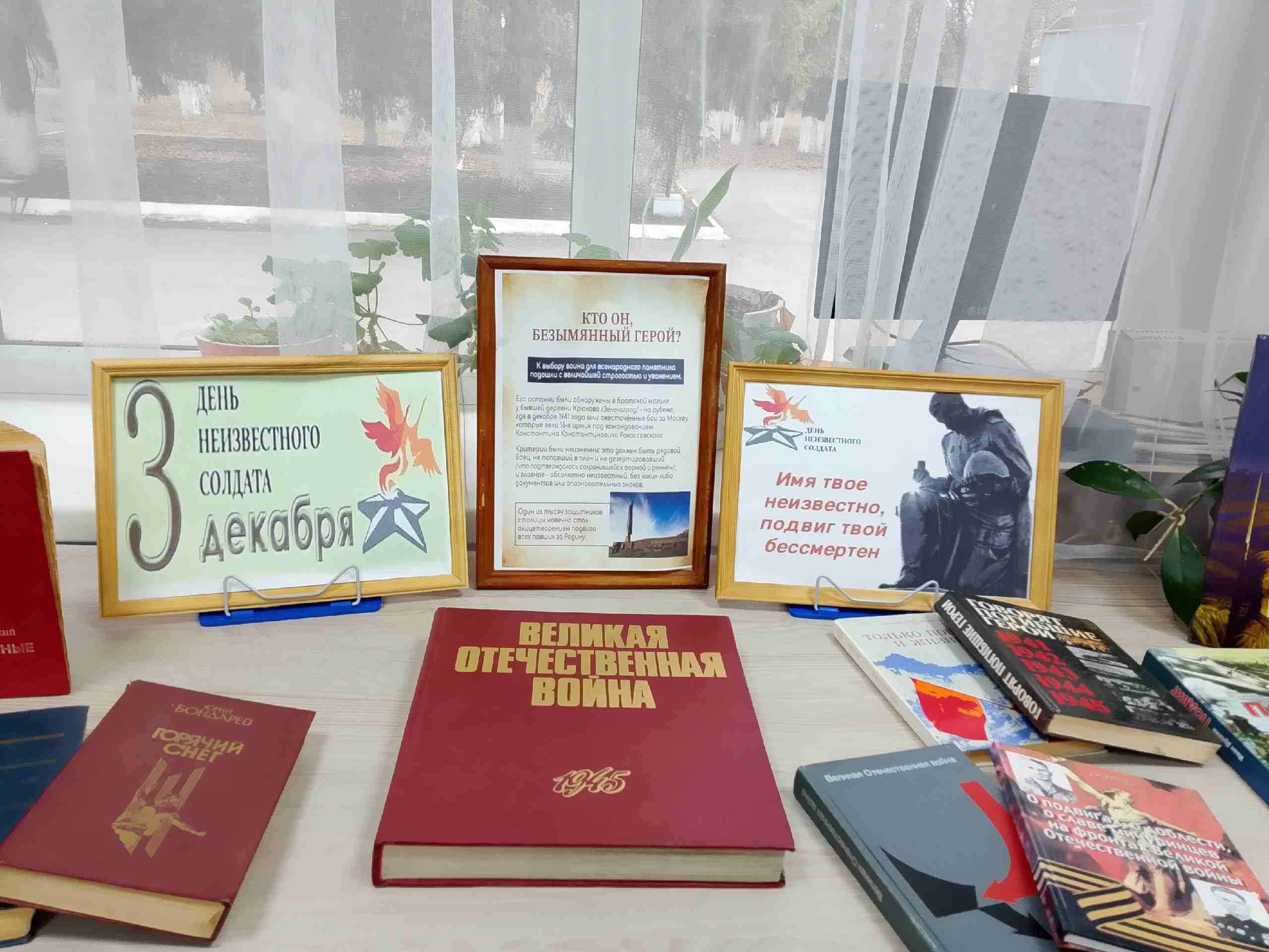 К этой дате в Новоникольском филиале оформлена тематическая книжная выставка “Имя твоё неизвестно, подвиг твой бессмертен!”. Читатели смогут познакомиться с историей празднования Дня Неизвестного солдата в России, подвигами солдат, отдавших свою жизнь за родную страну в годы Великой Отечественной войны.