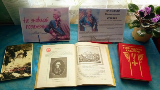24 ноября 2025 года, к 295-летию великого полководца А.В. Суворова, в Новоюрьевской сельской библиотеке открылась книжная выставка «Не знавший поражения».