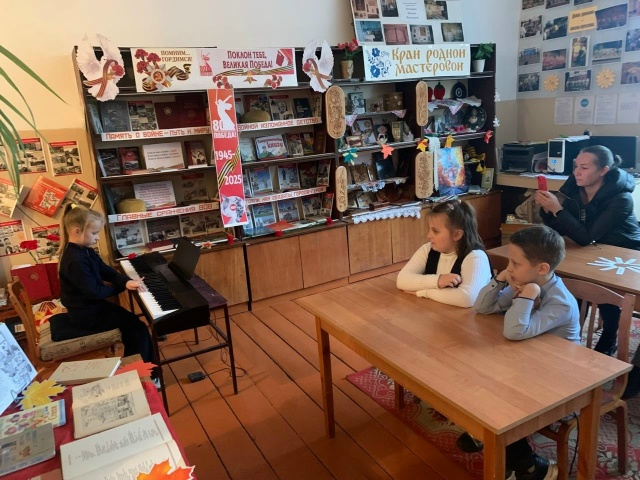 Но не только этот праздник собрал сегодня нас в библиотеке. Был ещё один замечательный повод – это посвящение в учащихся 1 класса ДШИ и присвоению детям звание “Юный музыкант”, а первоклассники преподнесли всем присутствующим свои первые музыкальные поздравления.