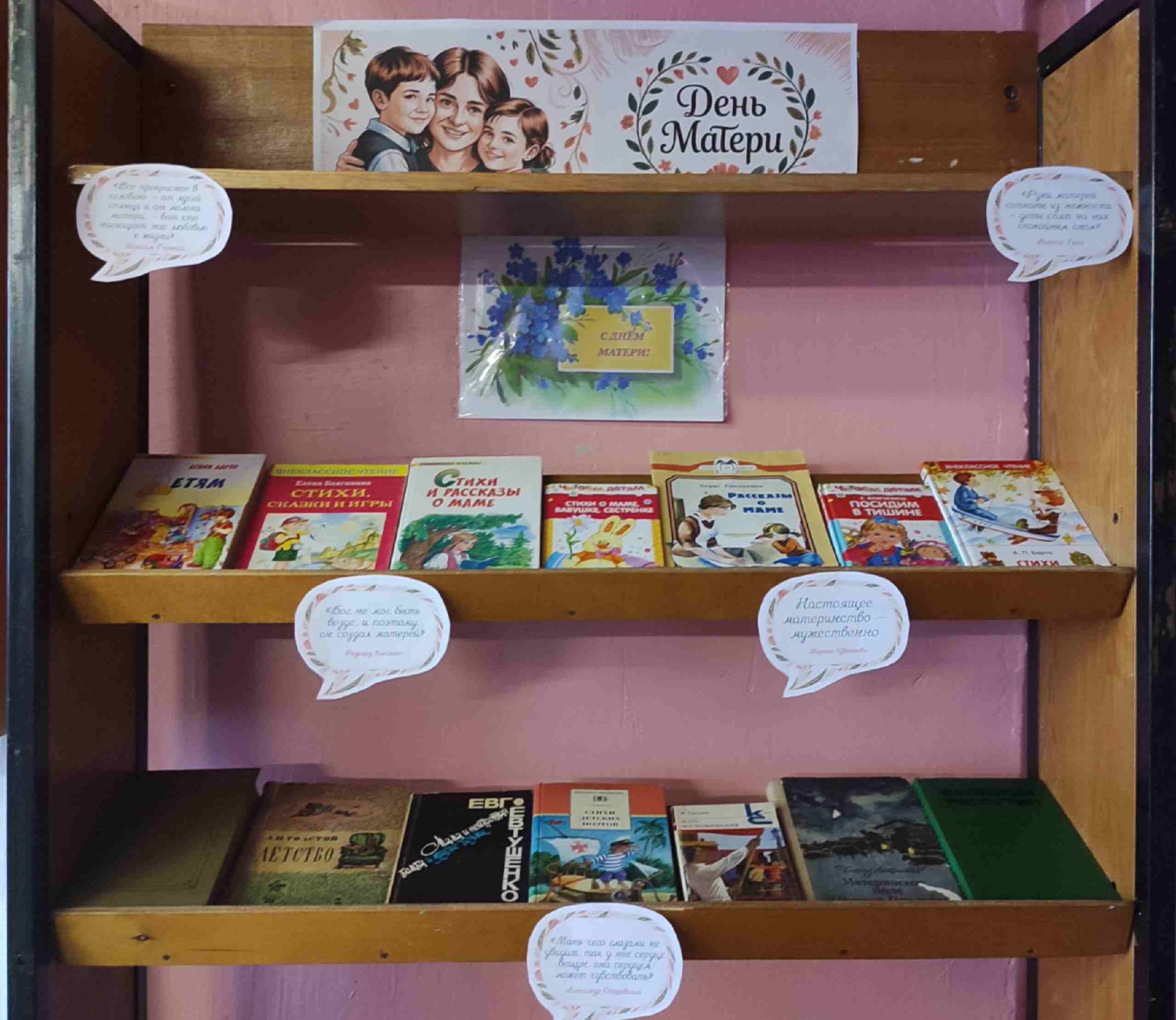 В преддверии значимой даты в Кочетовском сельском филиале МБУК ЦБ оформлена книжная выставка “Тепло в каждой строке”. На выставке представлены книги известных писателей и поэтов, которые создавали в своих произведениях образ Матери. Любящая и добрая, понимающая и всепрощающая, терпеливая и покорная, женственная и нежная, мужественная и стойкая в горе, открытая и щедрая в радости, окружающая теплотой и заботой.