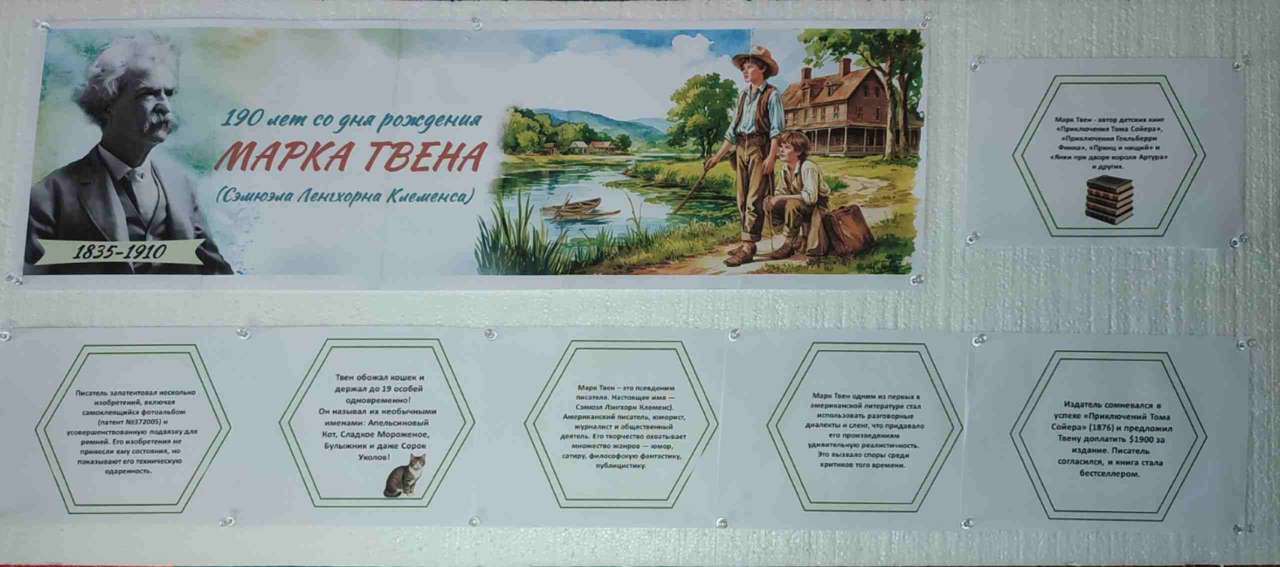 В Кочетовском сельском филиале МБУК ЦБ оформлена книжно-иллюстративная выставка “Марк Твен и его знаменитые герои” для читателей, чтобы встретиться с его незабываемыми героями и открыть для себя новые грани творчества великого мастера.