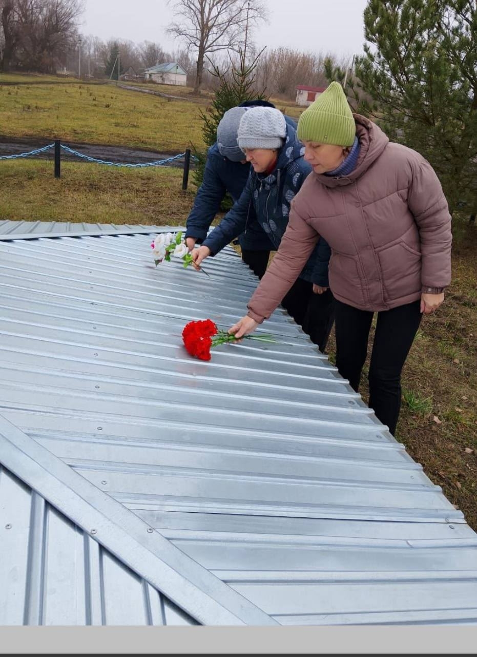 В этот день работники культуры села Поповка почтили память погибших героев: они возложили цветы к мемориалу.
