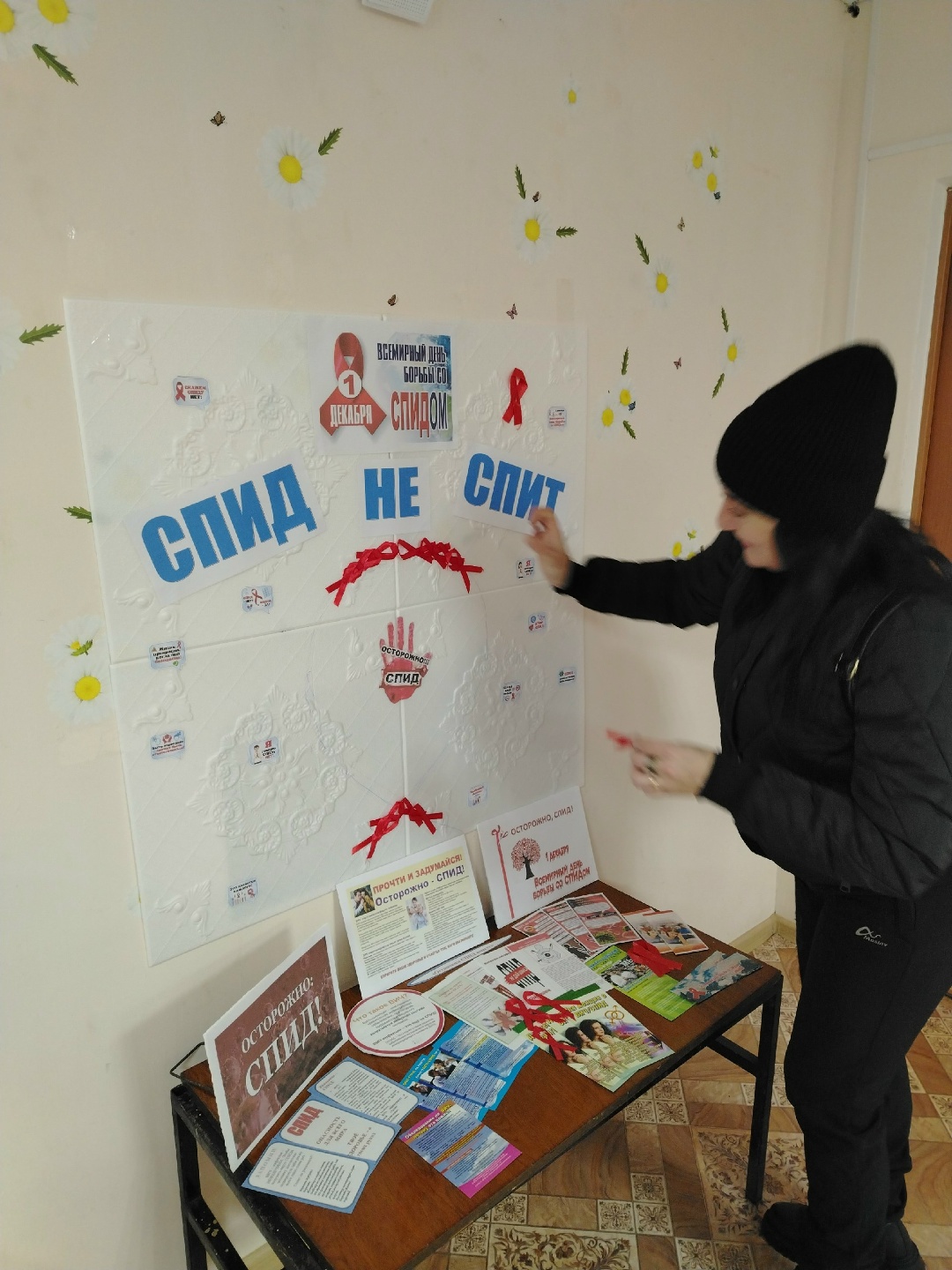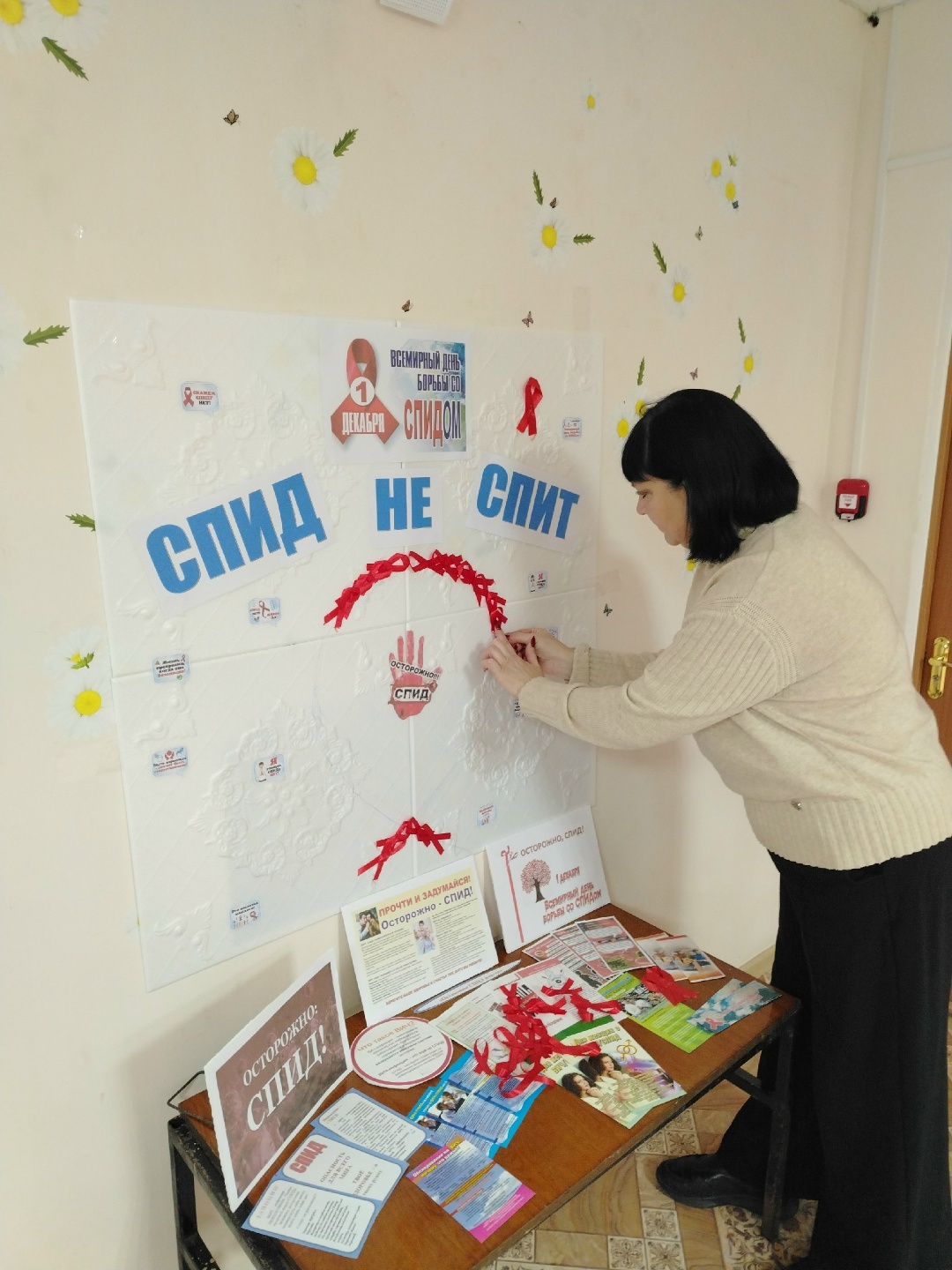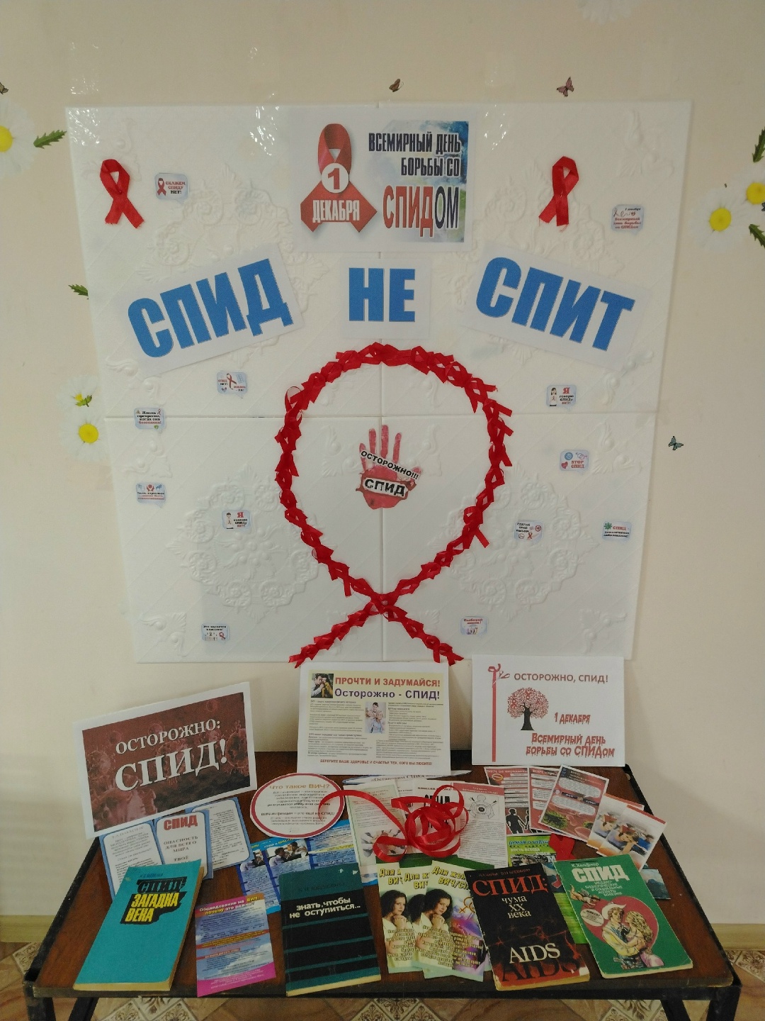Всем известно, что символом борьбы со СПИДом является красная ленточка. Центральная библиотека провела