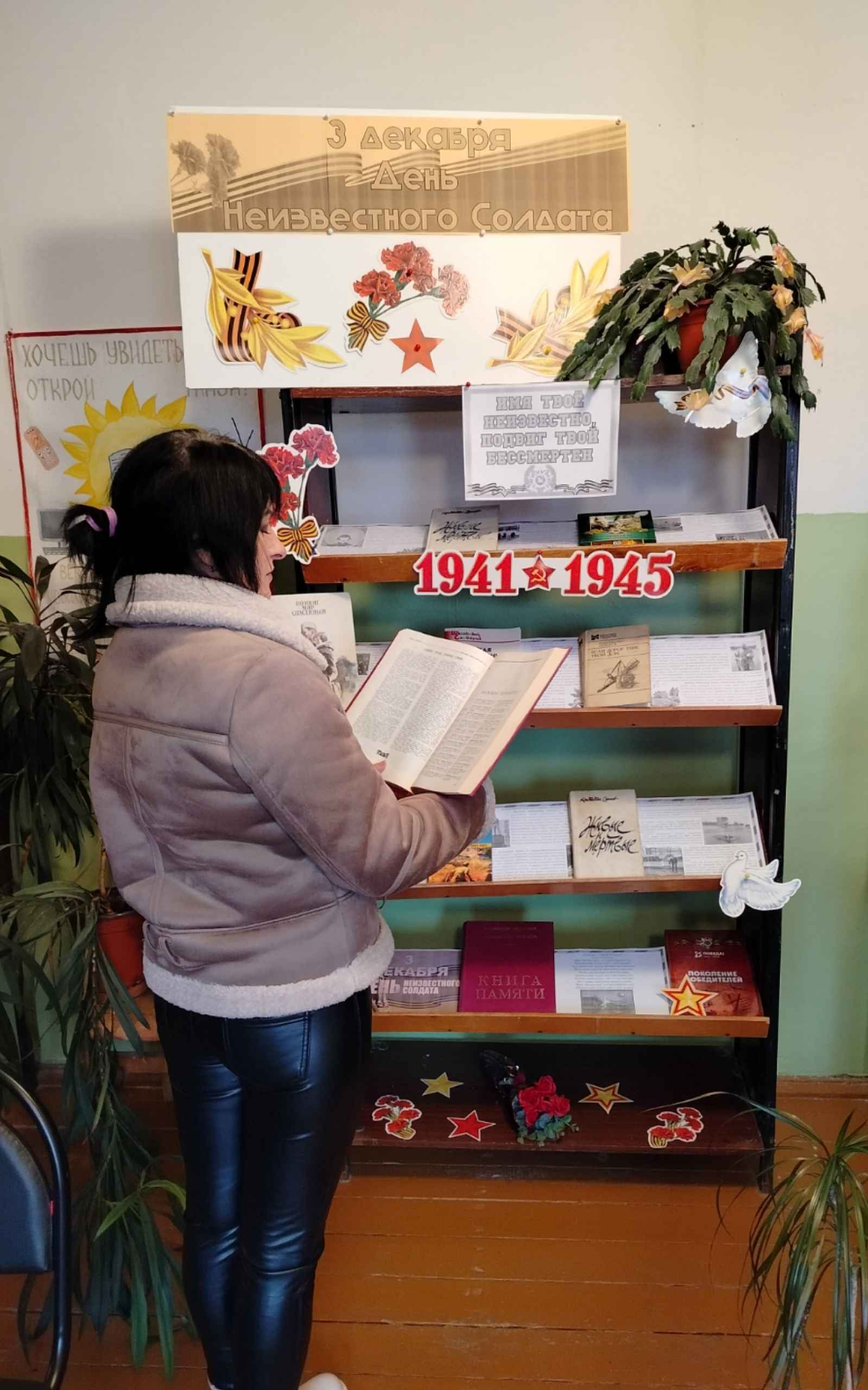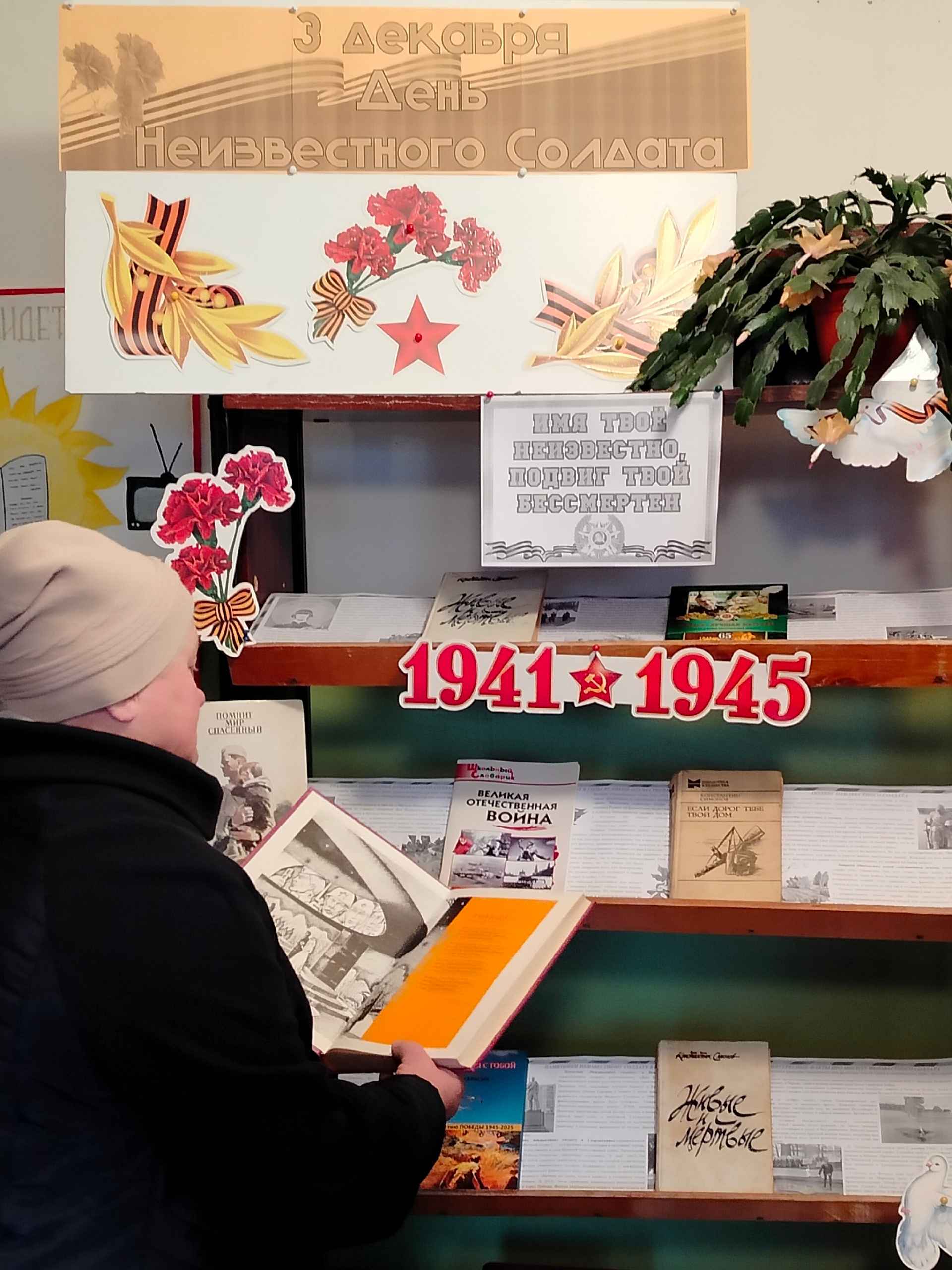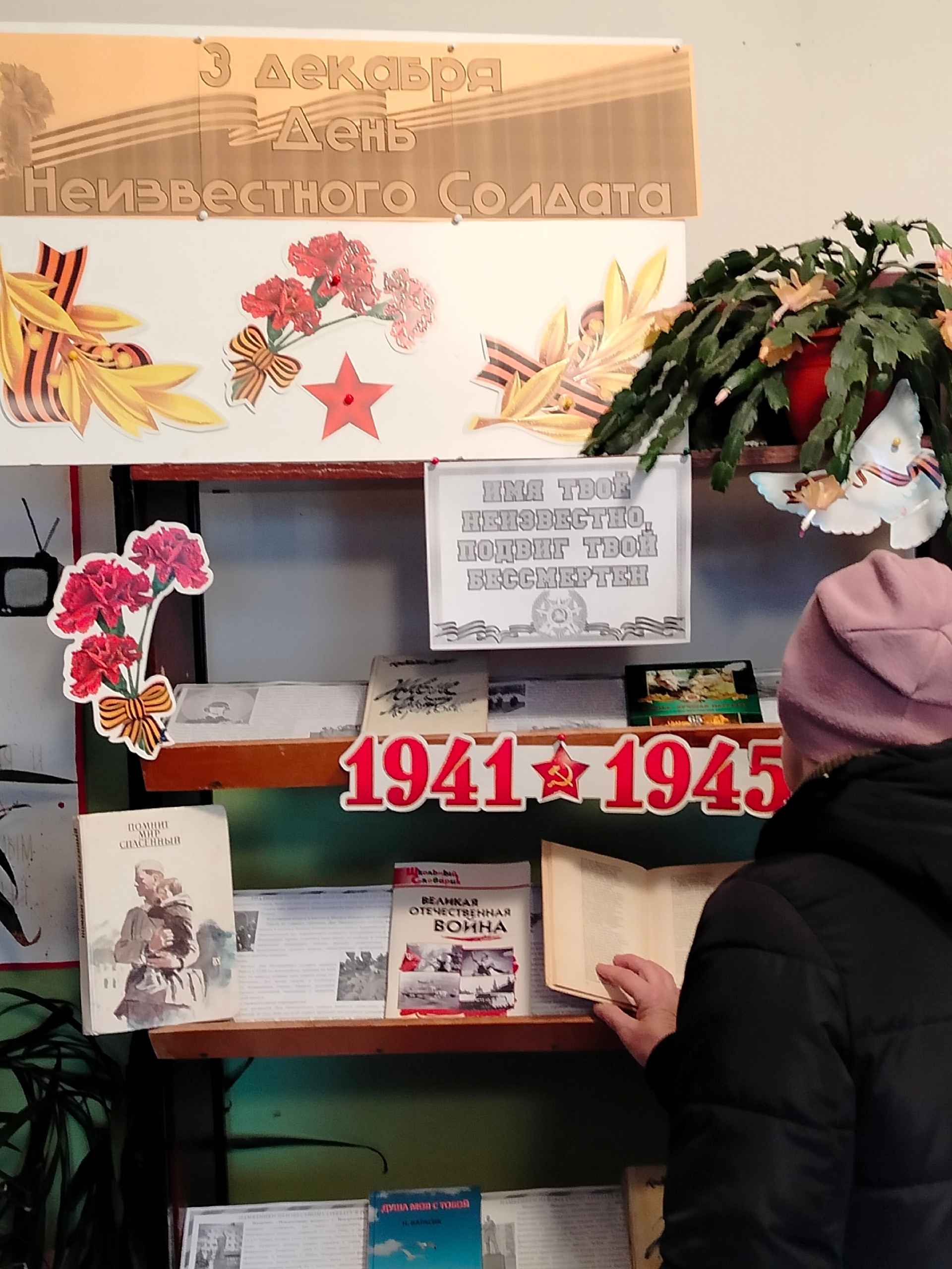 📚К этой дате в Терновском сельском филиале оформлена тематическая выставка “Имя твоё неизвестно, подвиг твой бессмертен!”. Читатели могут познакомиться с историей празднования Дня Неизвестного Солдата в России, подвигами солдат, отдавших свою жизнь за родную страну в годы Великой Отечественной войны, с памятниками Неизвестному солдату во многих странах мира.