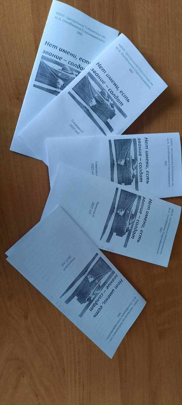 Библиотекарь рассказала присутствующим об истории Дня Неизвестного Солдата, о подвигах солдат, отдавших жизнь за Родину в годы Великой Отечественной войны, о памятниках Неизвестному Солдату в разных странах мира, а также о книгах, посвящённых солдатскому подвигу. Участникам мероприятия были розданы буклеты “Нет имени, есть звание – солдат”. Мероприятие завершилось минутой молчания в честь героев, чьи имена остаются неизвестными.