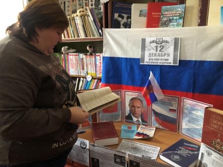 В Никольской сельской библиотеке прошел день правовой информации «Основной закон страны», приуроченный ко Дню Конституции Российской Федерации. На представленной тематической выставке посетители смогли ознакомиться с официальным текстом Конституции РФ и проследить, как изменялся Основной закон нашей страны. Иллюстрационный материал напомнил историю главных государственных символов России и Президентской власти. Конституция – основной закон государства, и представленные на выставке книги, помогут еще больше расширить свои знания о правовой системе нашей страны, а также укрепить чувство гражданской ответственности и патриотизма. И это очень важно для каждого из нас и для будущего России.
