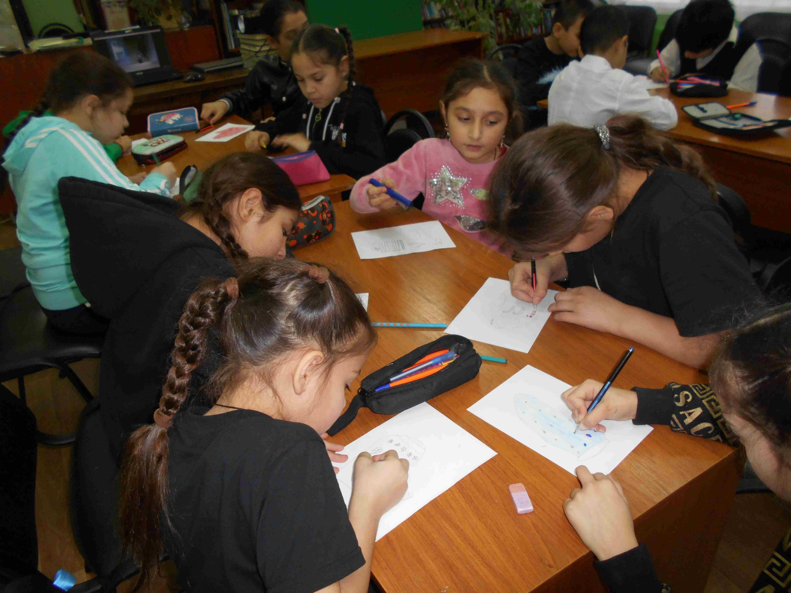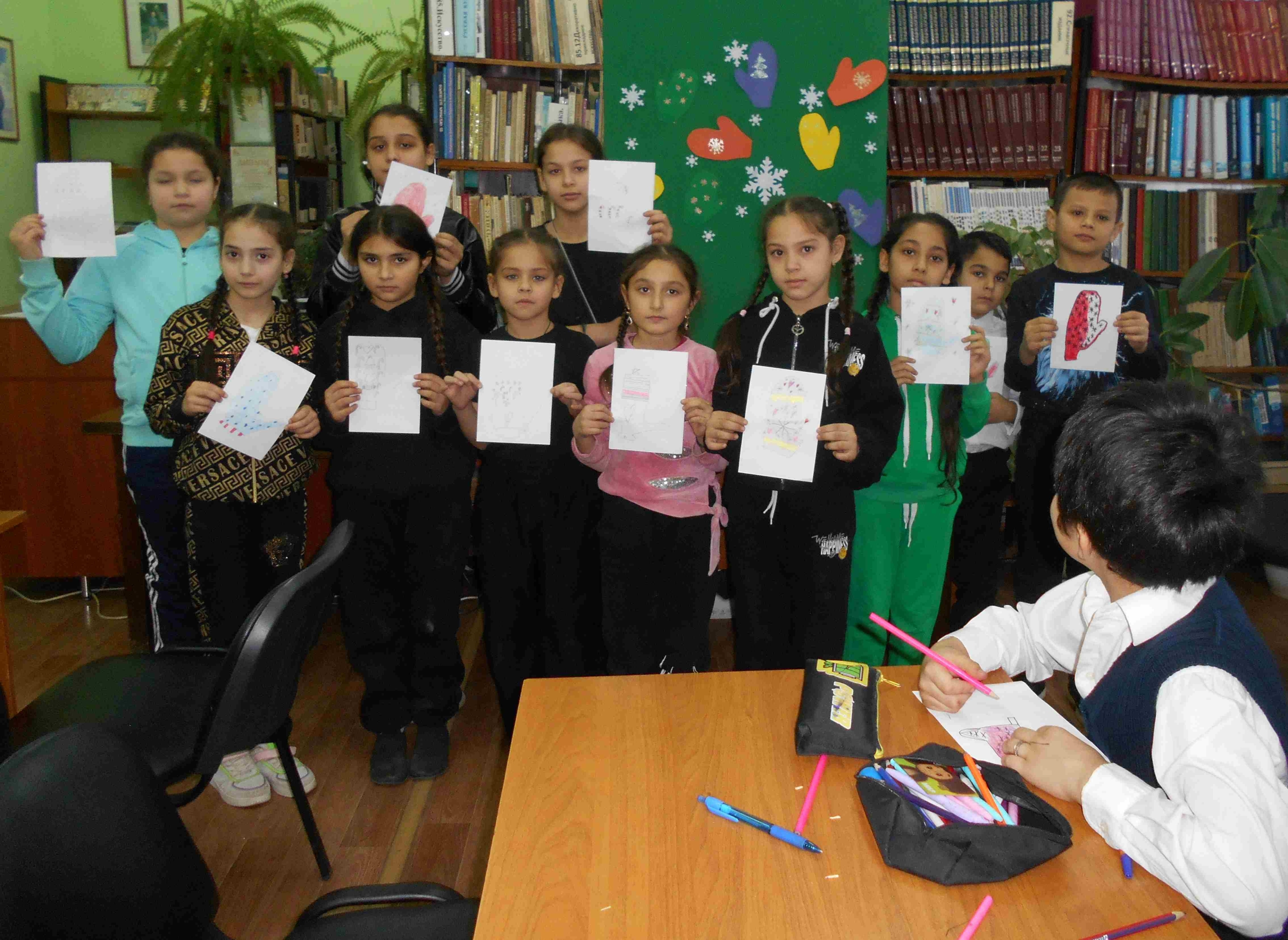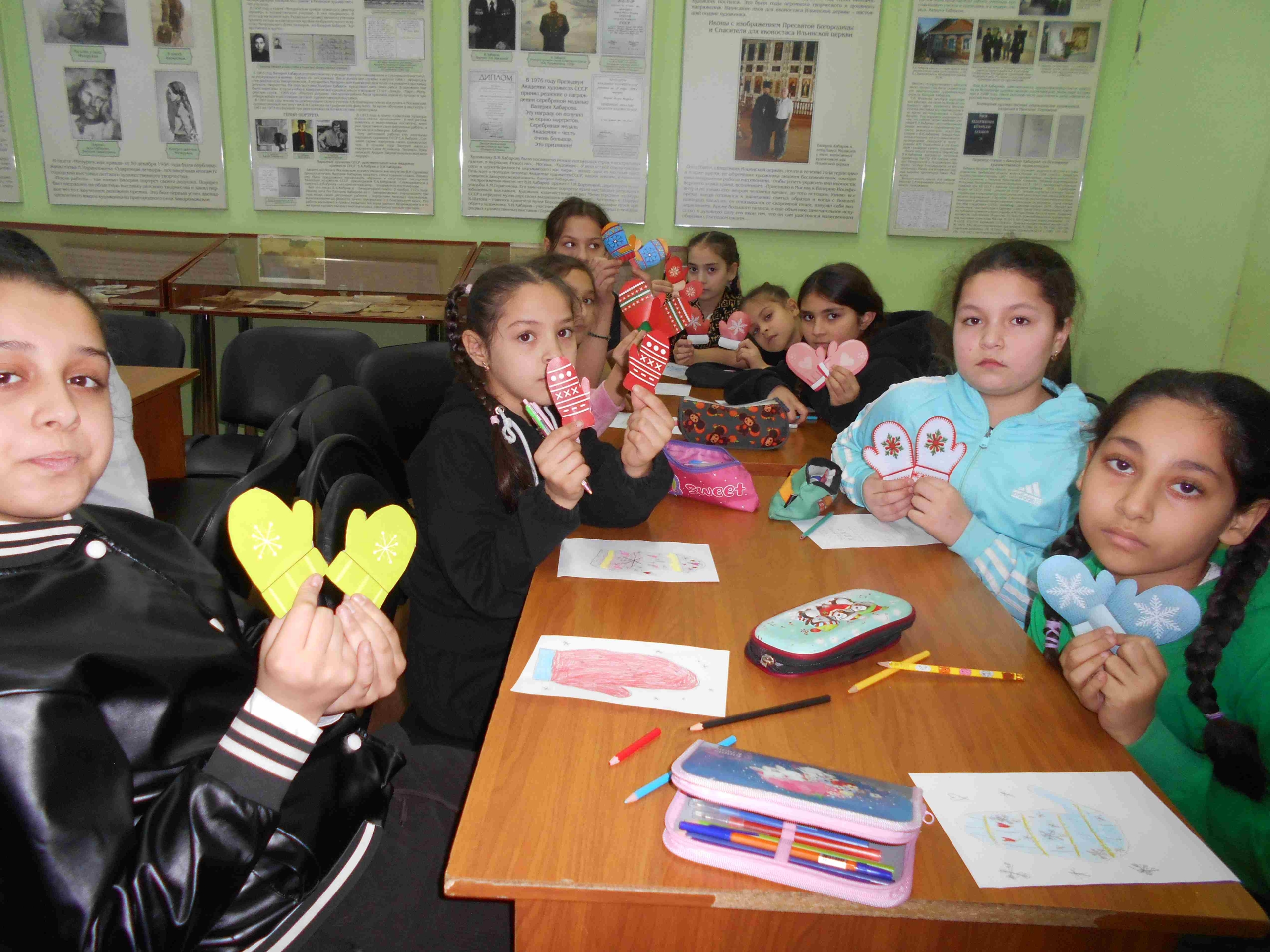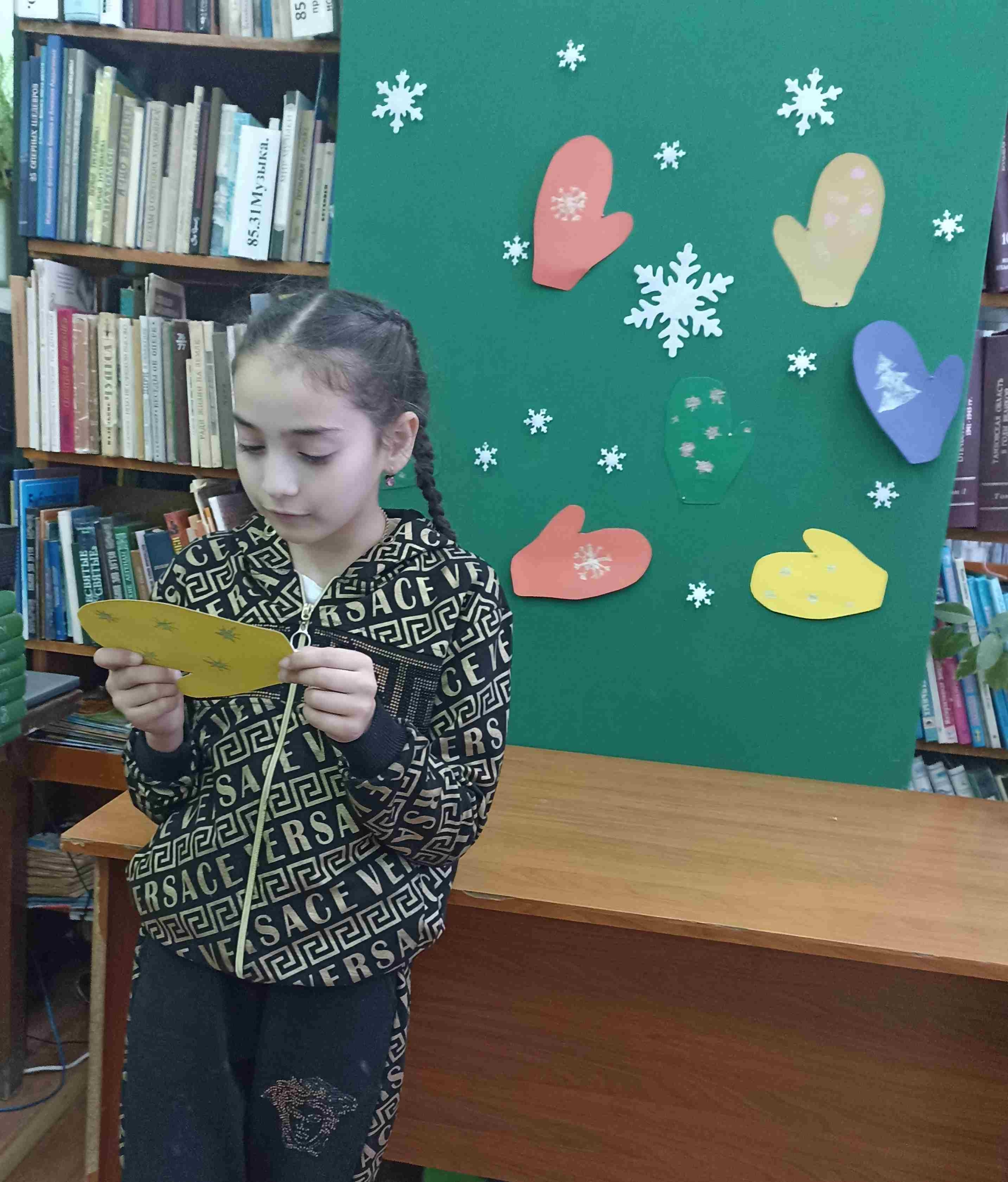 Библиотекарь рассказала много интересной информации о варежках и рукавицах, чем они отличаются и почему их так называют, что может означать украшающий орнамент и узоры на них. Во время игр детям пришлось собирать картинки варежек по парам, рисовать, читать стихи и отгадывать загадки.