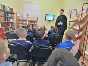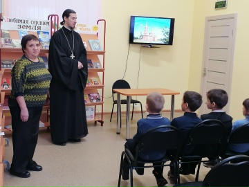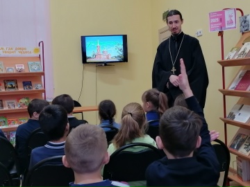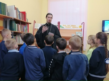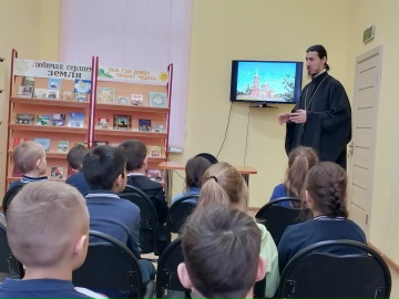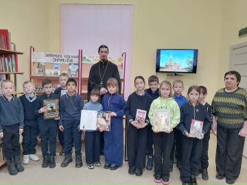 16 декабря в Староюрьевской детской библиотеке настоятель Введенского храма с. Заворонежское иерей Димитрий Скрябин для обучающихся 2 «Б» класса (кл. руководитель Фролова Н.А.) провел урок духовной культуры «О вечном, добром и прекрасном». Священник рассказал о Рождестве Христове, о Евангелии и его значении для христиан, подробно поговорил о том, как важно почитать старших. проявлять доброту, заботу и внимание к окружающим в повседневной жизни. В рамках встречи также дети узнали : что такое православная молитва, когда и как христиане могут обращаются к Богу. На память Отец Дмитрий подарил девочкам и мальчикам иконку Святого Великомученика Пантелеимона, в свою очередь ребята поблагодарили настоятеля за познавательную и душевную беседу.