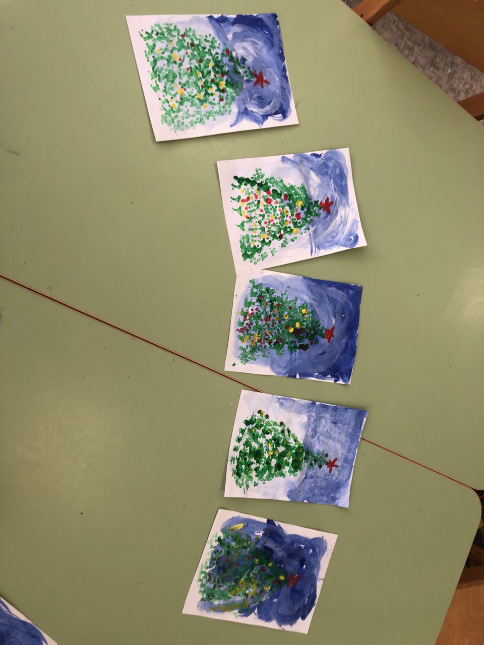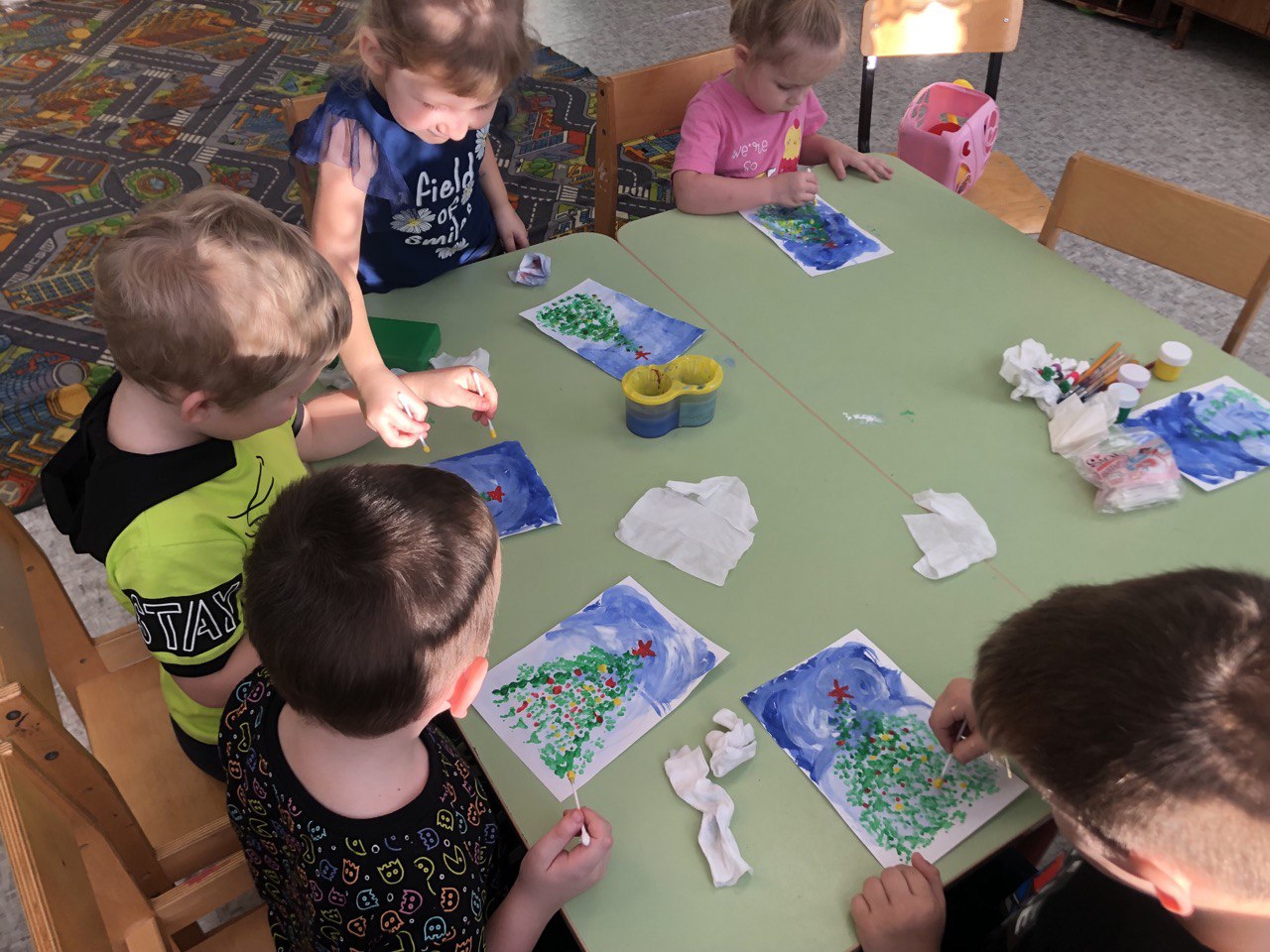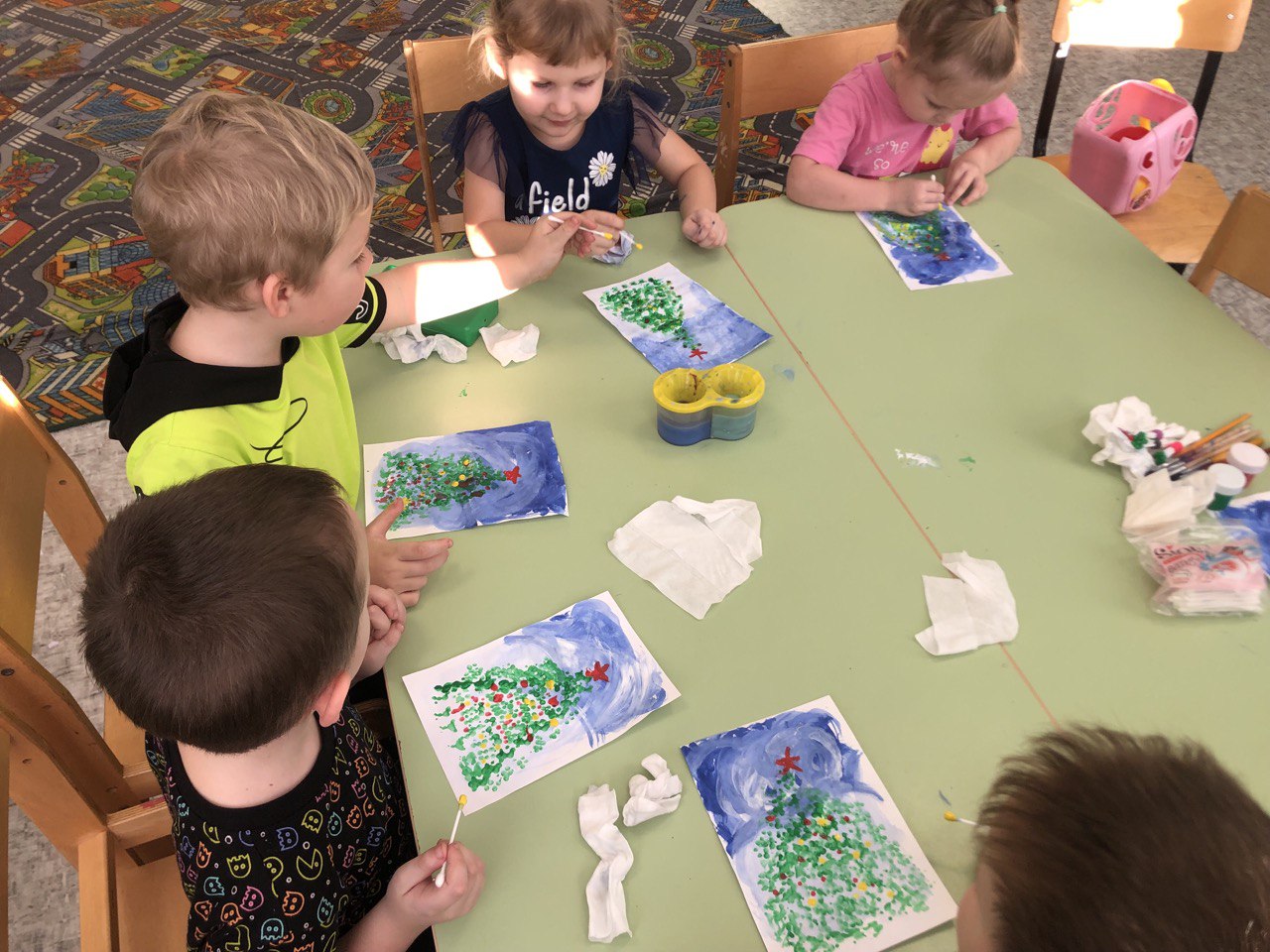 Одна из самых любимых тем в детском творчестве накануне Нового года – рисование ёлочки. На занятии воспитанники разновозрастной группы Вернадовского филиала вместе с библиотекарем рисовали красивую новогоднюю ёлочку. В процессе рисования дети не только учатся создавать фон и ёлочку с пышными веточками, но и узнают, что ёлкой можно назвать и ель, и сосну; что есть деревья лиственные и хвойные; у хвойных деревьев вместо листиков иголочки, они называются хвоинки. И самое главное и важное – это то, что ёлочка растёт в лесу и радует всех зверей и птичек. А дома на Новый год лучше наряжать искусственную ёлку.