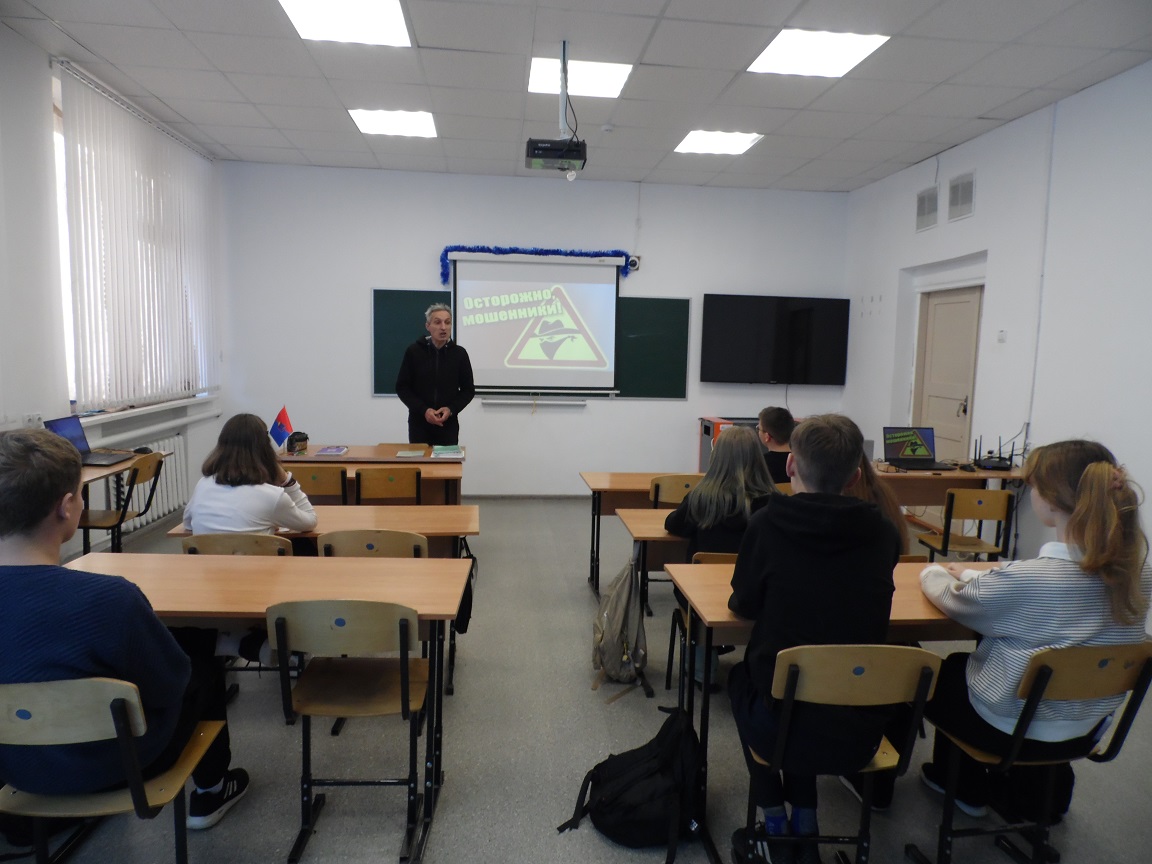 Тема интернет и мобильных мошенничеств особенно актуальна в последнее время. Заведующий библиотекой познакомил учеников со способами защиты личных данных в интернете. Особенно подробно затронули тему мобильных мошенничеств. Способы обмана доверчивых граждан, а чаще всего детей, постоянно совершенствуются, поэтому главное в любой жизненной ситуации сохранять спокойствие, рассудительность и бдительность и не поддаваться на провокации и шантаж мошенников.