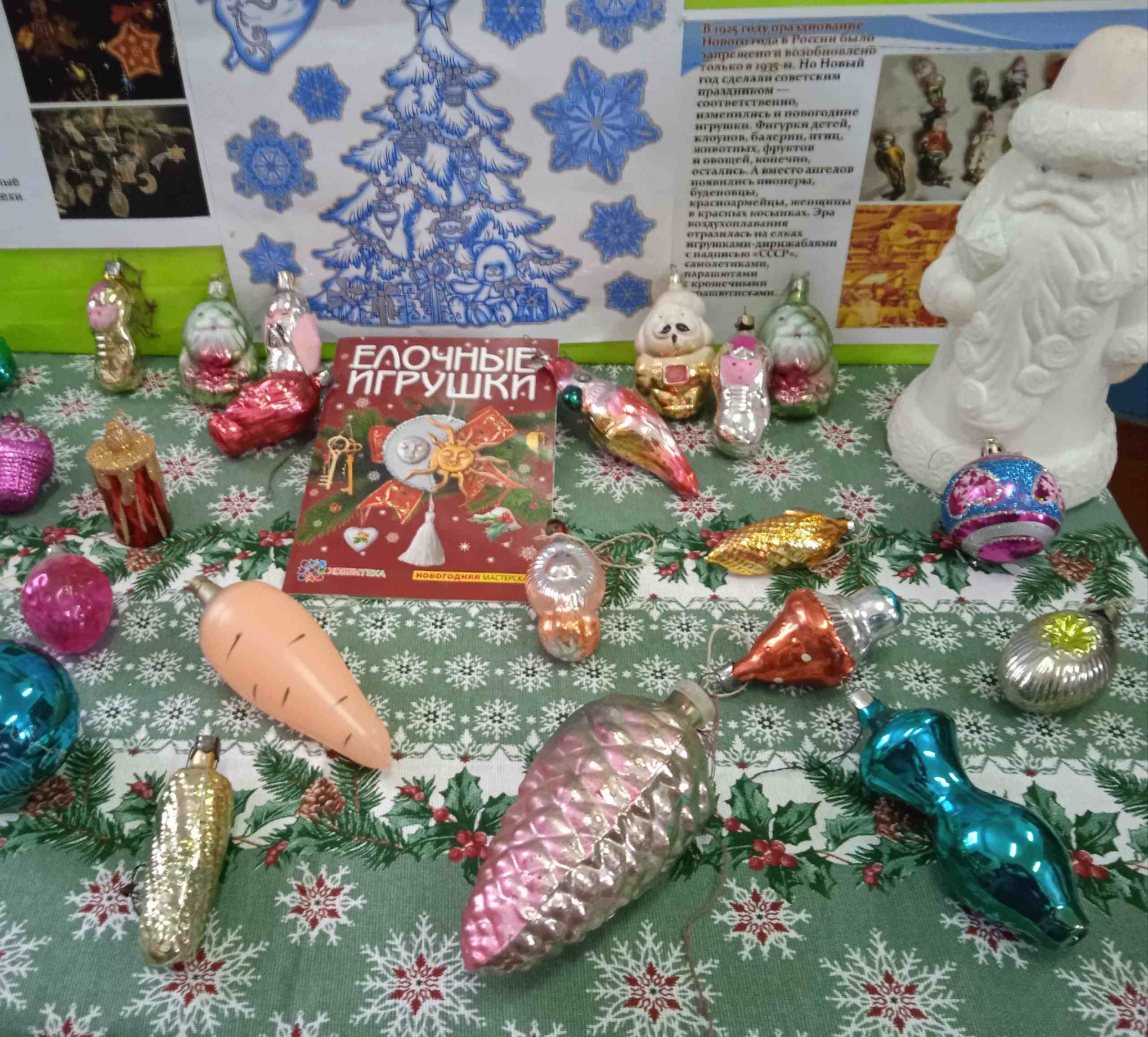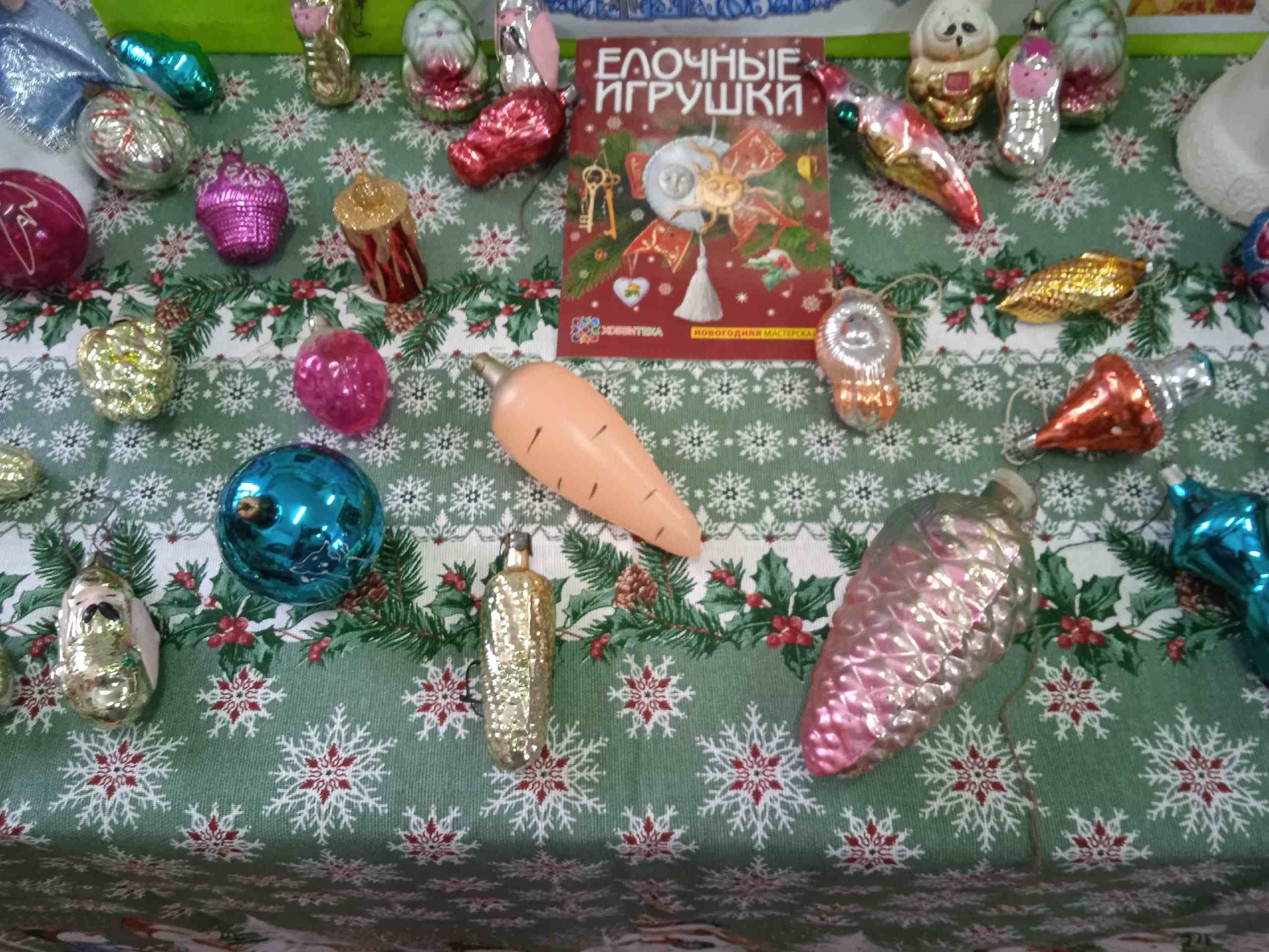 Посетители выставки познакомятся с историей создания новогодних игрушек, с книгами про Новый год, а также смогут полюбоваться елочными игрушками разных лет, среди которых Дед Мороз и Снегурочка, персонажи из сказок, шары, сосульки и др.