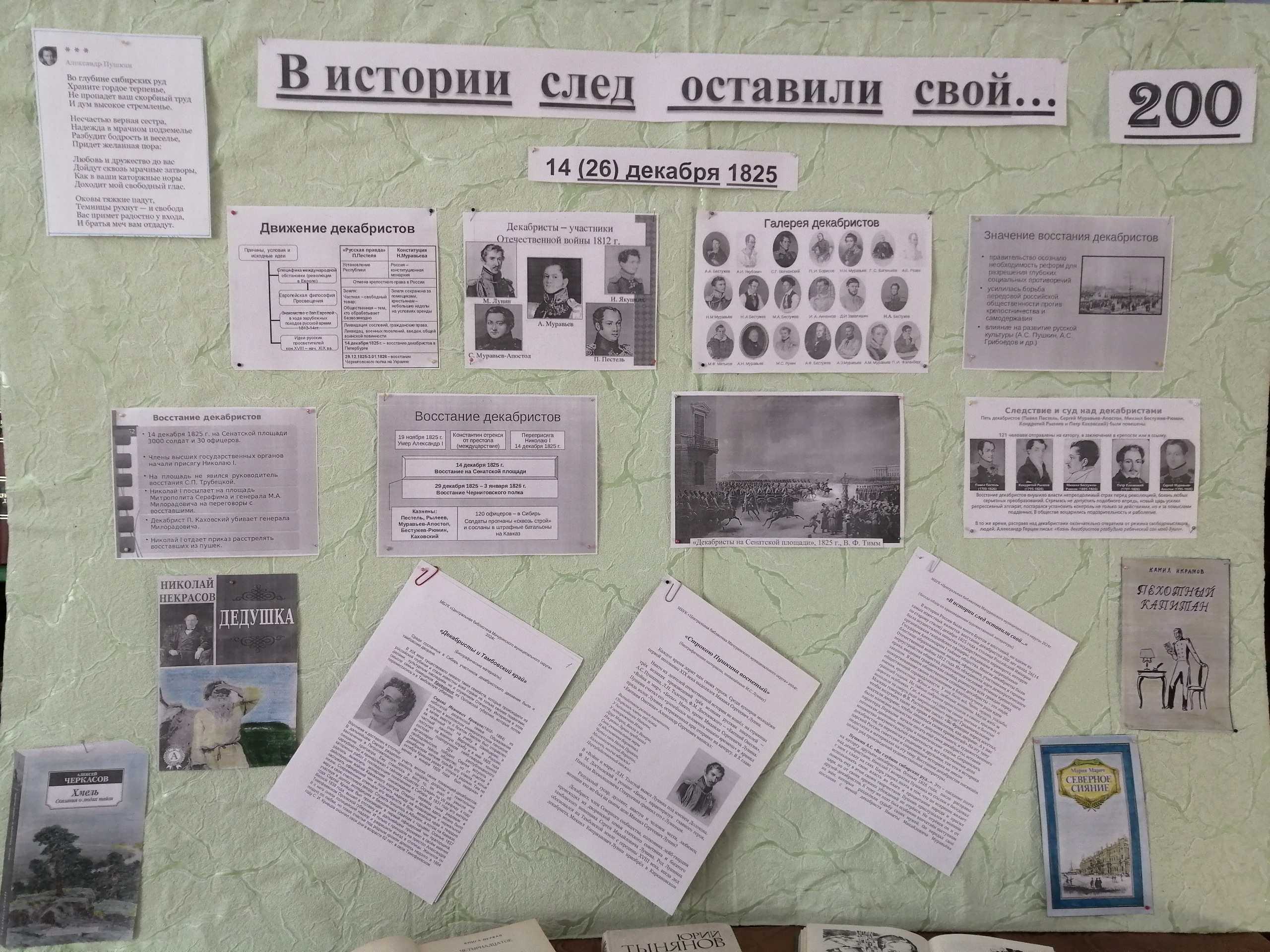 В Староказинском сельском филиале была организована тематическая выставка, “В истории след оставили свой…”, на которой представлены произведения художественной литературы, посвященные восстанию декабристов.