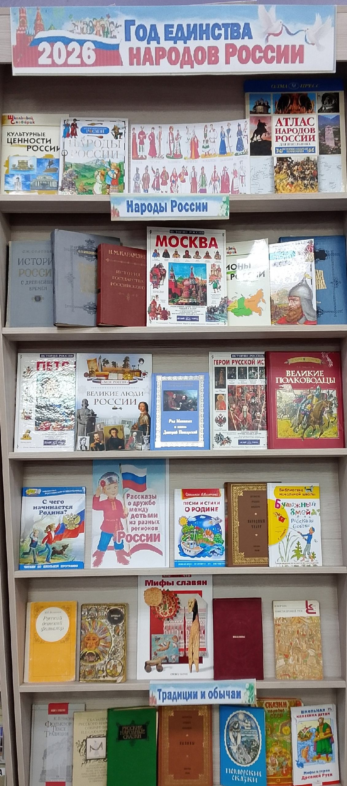 В Новоникольском филиале к Году единства народов России работает книжная выставка “Год единства народов России”.