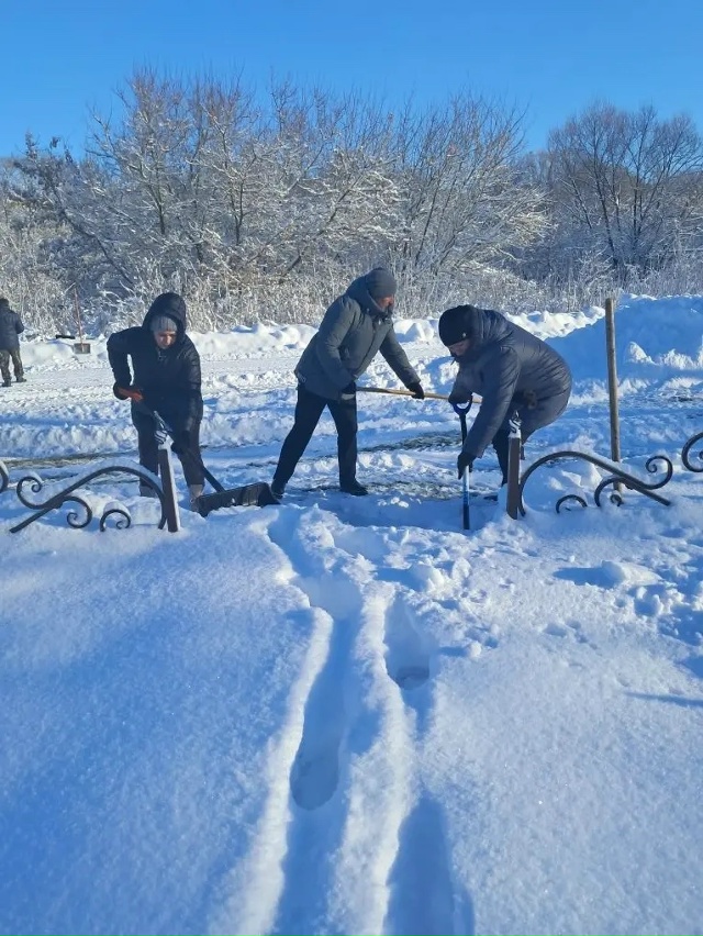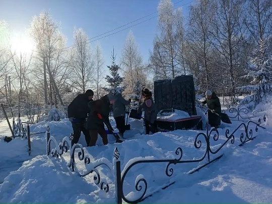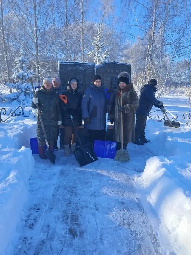 16 января сотрудники территориального отдела и работники культуры провели уборку территории памятника от снега.