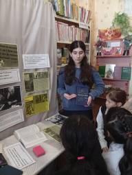 Интересный рассказ библиотекаря Полянской Т. В. сопровождался выдержками из его произведений. В продолжение встречи состоялись громкие чтения по цепочке детской приключенческой повести” Кортик”.Именно это детское произведение принесло ему широкую известность и признание читателей. По мотивам многих книг писателя были сняты успешные кассовые фильмы. Его книги изданы в 52 странах, общим тиражом более 20 миллионов экземпляров. Главное в книгах А. Рыбакова- ценность вечных качеств:смелость и дружба, мужество и находчивость, победа над врагами и над собой.