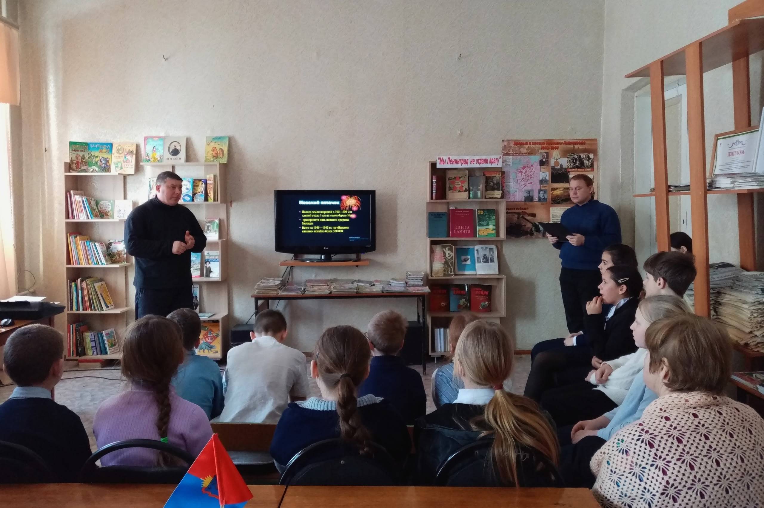 Ежегодно 27 января отмечается День воинской славы России – День полного снятия блокады Ленинграда , которая стала одной из самых трагических страниц в истории нашей страны.В библиотеке прошёл историко-патриотический час “Мы Ленинград не отдали врагу”.