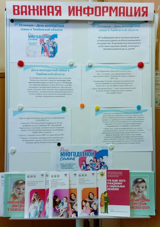 В Центральной библиотеке им. Ю.А. Ознобишина с 22 по 23 января 2026 года проходит информационная акция «Многодетная Россия», приуроченная к областному Дню многодетной семьи. Мероприятие направлено на укрепление семейных традиций, повышение престижа многодетности и популяризацию семейных ценностей среди жителей округа. В рамках акции в библиотеке представлены тематические выставки, консультации и информационные материалы о мерах поддержки семей.
