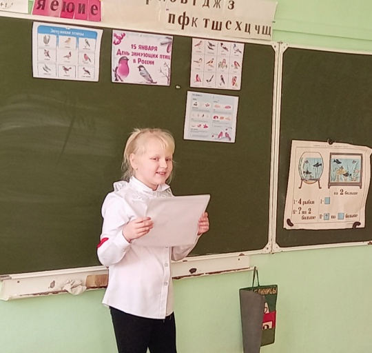 15 января, в День зимующих птиц в России, библиотекарь Новоюрьевской сельской библиотеки Оксана Фролова провела для учеников 2 класса экологический урок «Зимние пернатые: друзья нашего двора».