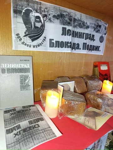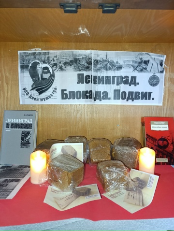 27 января библиотекарь Спасской сельской библиотеки оформила книжную выставку «Ленинград. Блокада. Подвиг» и провела акцию «Блокадных хлеб»