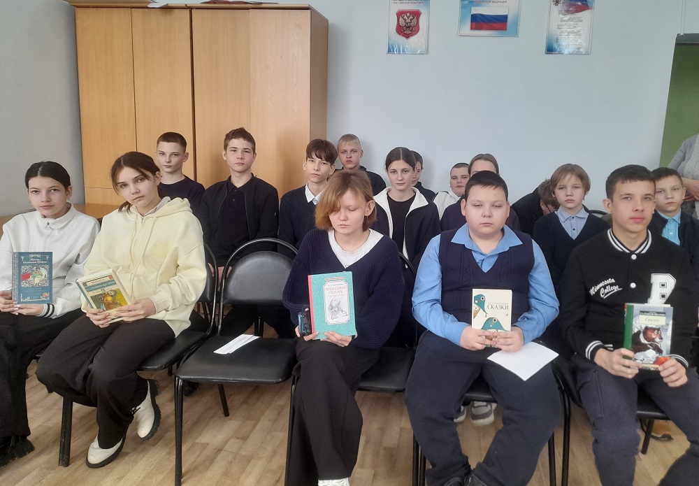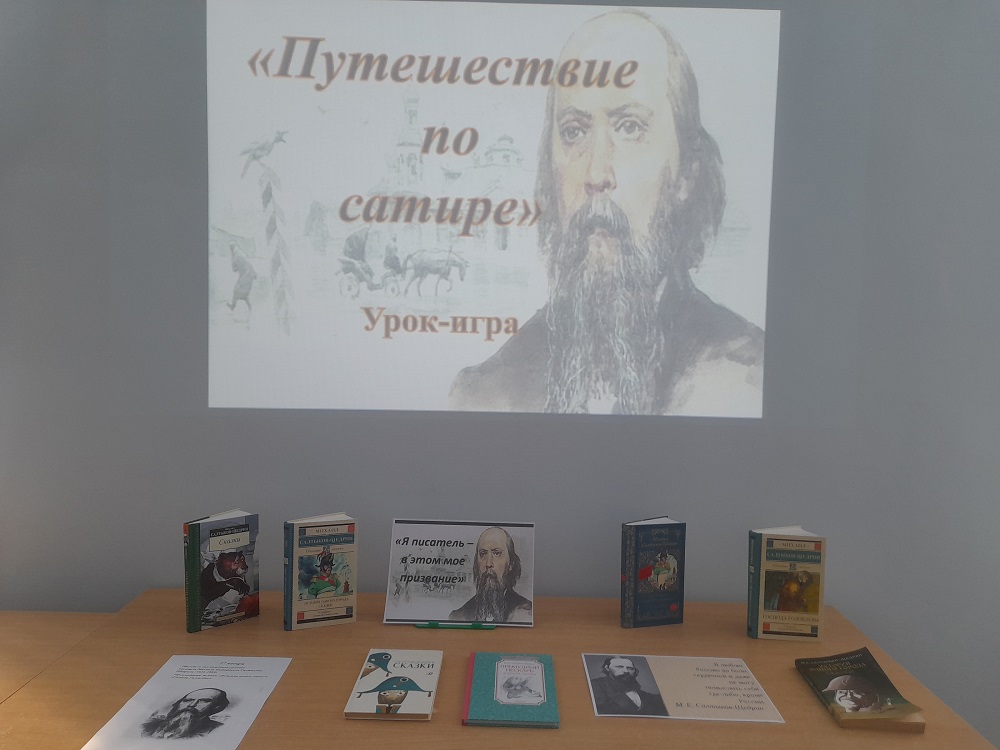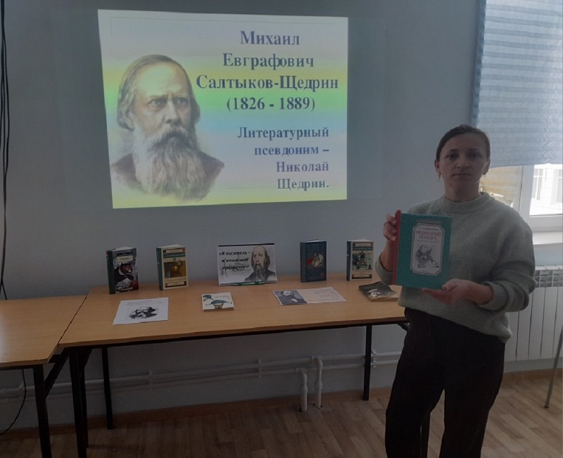 В ходе урока присутствующие узнали о непростой, но такой богатой биографии Салтыкова-Щедрина. Библиотекарь рассказала о его детстве, о годах учебы, о службе, которая дала ему столько материала для его острых произведений. Дети с интересом слушали о том, что Михаил Евграфович оставил след не только в литературе, но и в русском языке: пустил в обиход новые слова. Наиболее известными из них являются «мягкотелость» и «халатность».