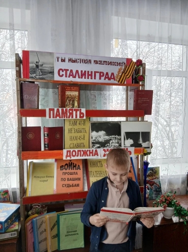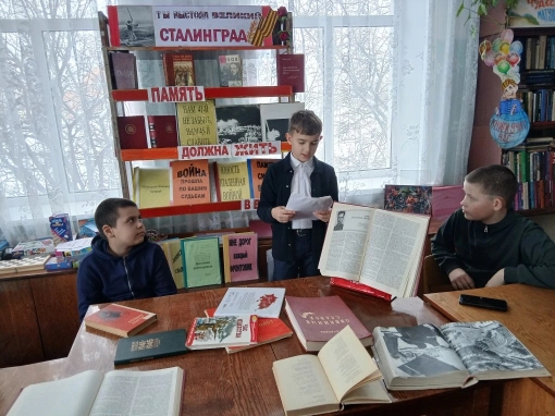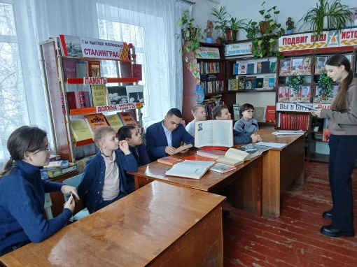 Урок мужества “Ты выстоял, великий Сталинград!” состоялся в Озёрской библиотеке. Ребята узнали о массовом героизме защитников города Сталинграда. Примером отваги и мужества стал для ребят рассказ о земляке Денисове Иване Федоровиче, участнике Сталинградской битвы. На мероприятии прозвучали стихи О. Берггольц “Сталинград”, А. Суркова Защитник Сталинграда”, М. Агашина “Второе февраля” и др.