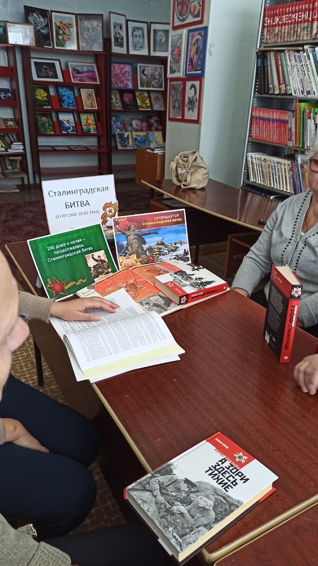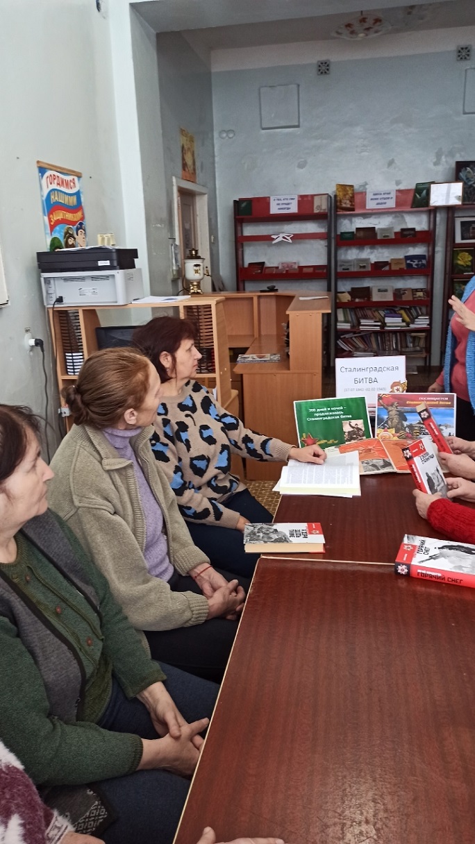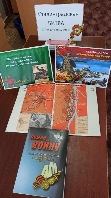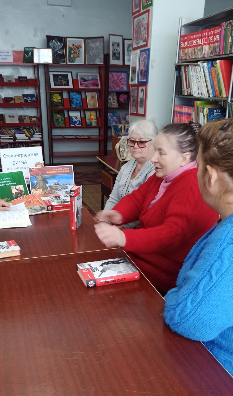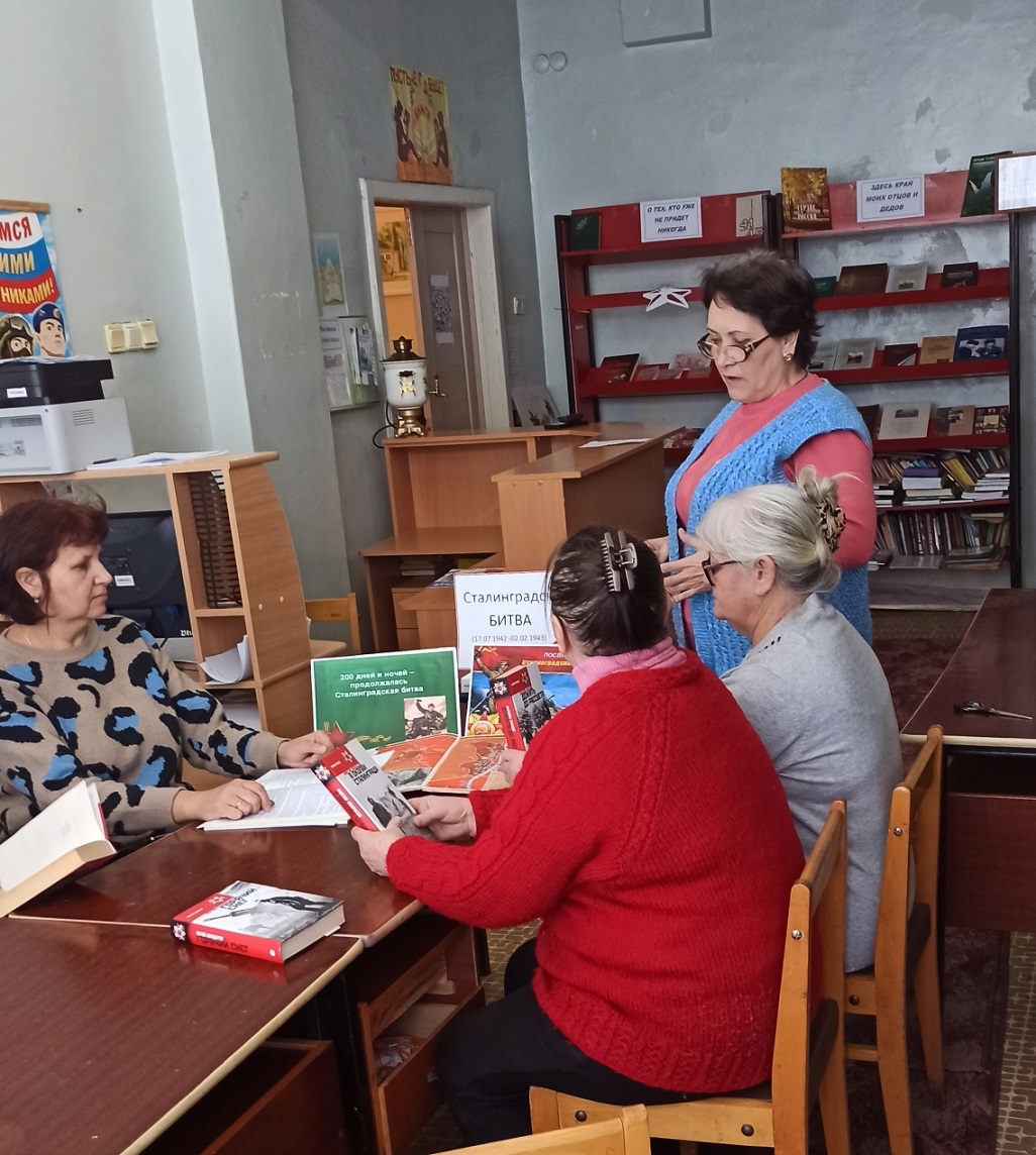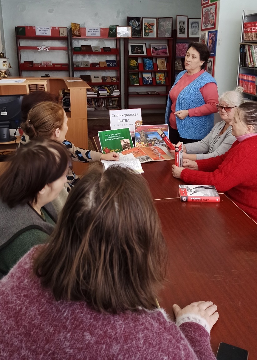 В День разгрома советскими войсками немецко-фашистских войск в Сталинградской битве в Ленинской сельской библиотеке МБУК «БКМО» была проведена тематическая беседа “Горят гвоздики на снегу”. Библиотекарь Шевченко Г. Ф. рассказала собравшимся о мужестве и стойкости советских солдат и офицеров, державших оборону Сталинграда, о единстве и героизме всего народа в годы Великой Отечественной войны. Особое внимание было уделено стратегическому значению победы в Сталинградской битве, ставшей символом несгибаемой воли и духовной силы. Также она отметила, что каждый должен знать и помнить историю побед Советской армии и рассказывать своим детям и внукам. В заключении участница мероприятия Новикова Т. поделилась воспоминаниями своего деда о Сталинградской битве.