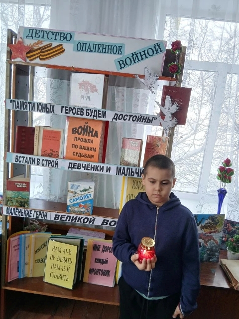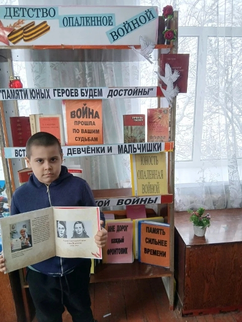 К Дню памяти юных героев антифашистов в Озерской библиотеке оформлена книжная выставка “Детство, опаленное войной”.