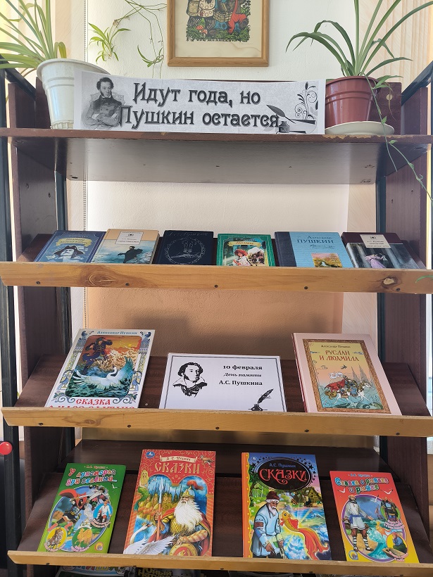 В филиале Детская библиотека открыта выставка‑память «Идут года, но Пушкин остаётся», приуроченная ко Дню памяти А. С. Пушкина. На выставке представлены книги о жизни поэта, рассказы тех, кто его знал, и все любимые произведения: «Сказка о рыбаке и рыбке», «Руслан и Людмила», стихи и многое другое. Приглашаем юных читателей и их родителей почтить память великого русского поэта и открыть для себя новые грани его творчества.