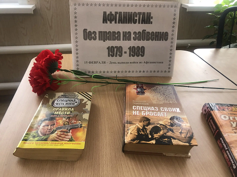 К этой дате в Вернадовской сельской библиотеке оформлена книжная выставка «Афганистан: без права на забвение». Литература, представленная на выставке, рассказывает о героических страницах нашей истории, о солдатах и офицерах, проявивших мужество и героизм.