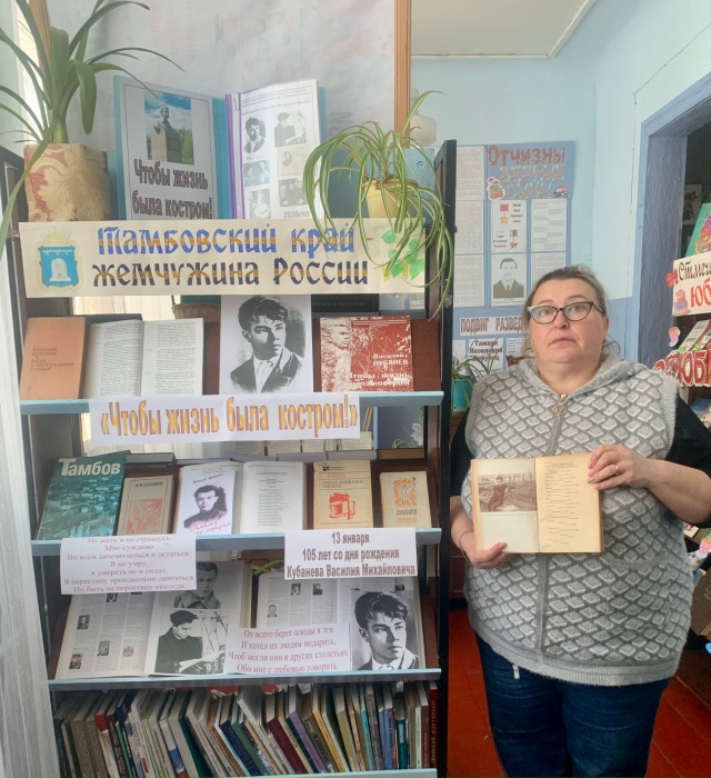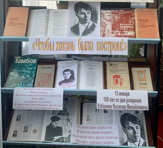 В январе 2026 года исполнилось 105 лет со дня рождения талантливого поэта, журналиста, педагога – Василия Михайловича Кубанева. В Скобелевский сельской библиотеке-филиале состоялся вечер-знакомство «Чтобы жизнь была костром!» со стихотворениями и песнями, автором текста которых является Василий Кубанев. Посетители библиотеки познакомились с творчеством молодого автора, создавшего удивительно красивые и глубокие по содержанию произведения. Так же узнали о героических страницах его биографии и самых знаменательных событиях жизни. В библиотеке оформлена выставка, на которой представлены произведения поэта, книги о нем, фотографии, статьи и папка-досье.