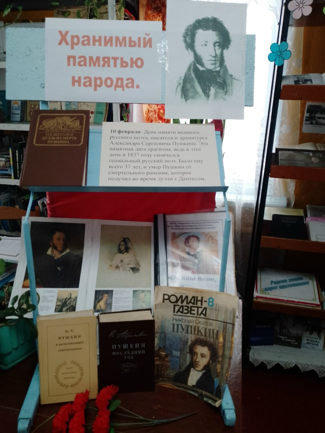 10 февраля-День памяти великого русского поэта, писателя и драматурга Александра Сергеевича Пушкина. Эта памятная дата трагична, ведь в этот день в 1837 году скончался гениальный русский поэт. В Новиковской сельской библиотеке оформлена выставка -портрет “Хранимый памятью народа”, литература представленная на ней раскрывает биографию поэта в последние годы жизни.