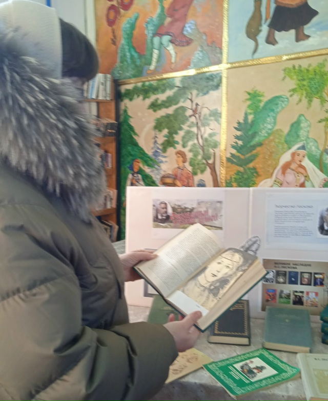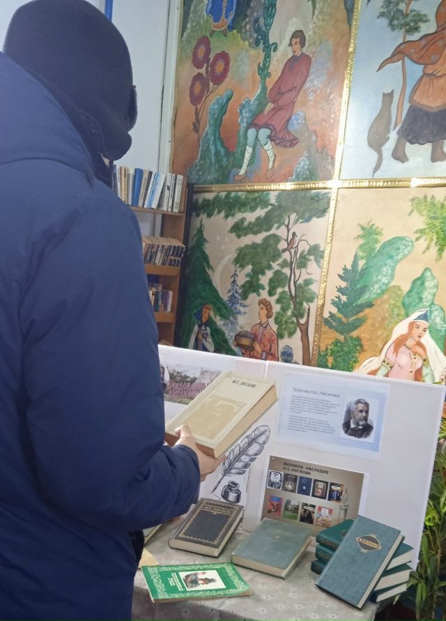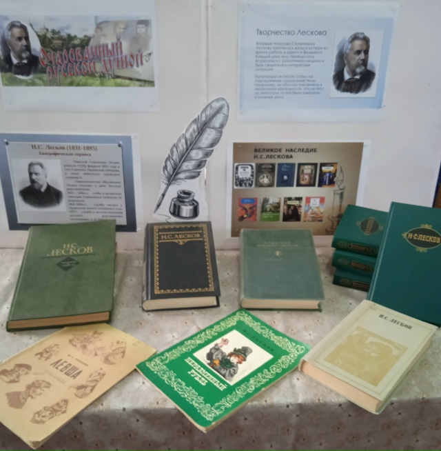 На выставке представлены издания знаменитых произведений Н. Лескова: “Левша”, ” Леди Макбет Мценского уезда “, ” Очарованный странник ” и другие.