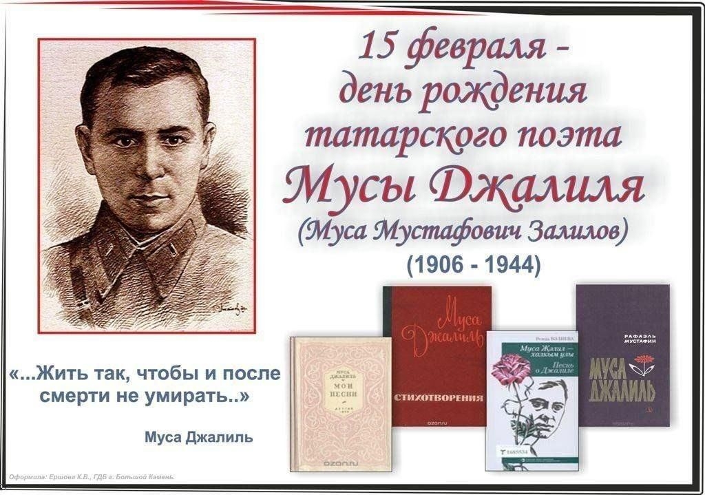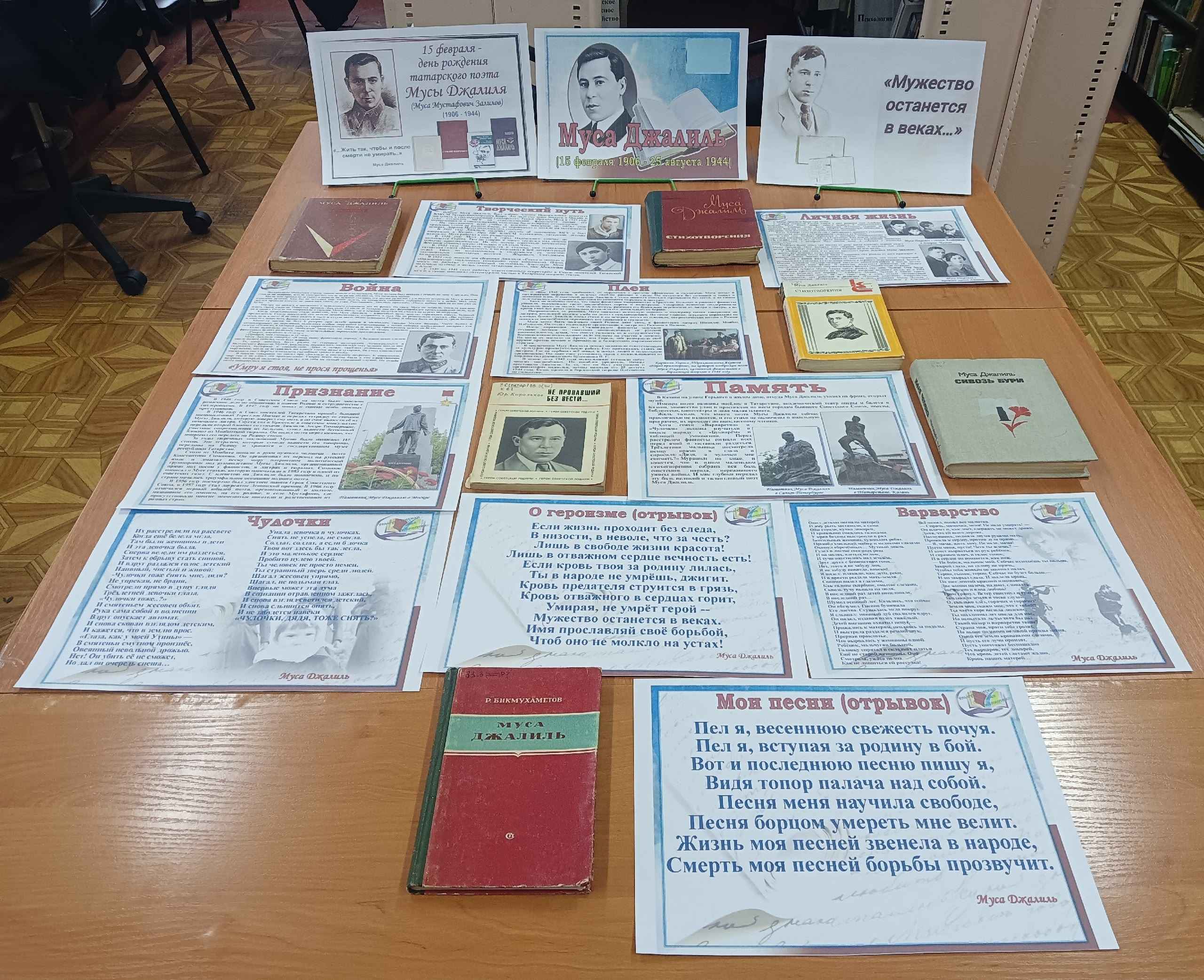 В Год единства народов России мы вспоминаем выдающегося татарского поэта и журналиста, военного корреспондента, Героя Советского Союза, лауреата Ленинской премии СССР Мусу Джалиля (полное имя — Муса Мустафович Джалилов, Залилов) (1906-1944). 15 февраля 2026 года исполняется 120 лет со дня его рождения. К этой дате в центральной библиотеке оформлена книжная выставка-память «Мужество останется в веках…», цель которой познакомить читателей с жизнью и творчеством поэта, на примере его героической судьбы воспитать чувство патриотизма, уважения к истории страны и её защитникам. Выставка расскажет читателям о суровых фронтовых буднях писателя, о страшном времени, проведенном в фашистских застенках. Единственным оружием Мусы Джалиля в концлагере были его стихи. Ни жестокие пытки, ни камера смертников не сломили волю поэта. Он был казнён, но не предал Родину, оставшись в памяти потомков героем. Имя Мусы Джалиля – это олицетворение гуманизма и символ мужества. Он прожил короткую, но яркую жизнь. Сборники стихов, представленные на выставке, словно кинохроника, рассказывают сегодняшнему подрастающему поколению об ужасах Великой Отечественной войны. Стихи Джалиля заставят задуматься о цене мира и напомнят о том, что подвиг не имеет национальности. Указом Президиума Верховного Совета СССР от 2 февраля 1956 года за исключительную стойкость и мужество, проявленные в борьбе с немецко-фашистскими захватчиками, Мусе Джалилю посмертно присвоено звание Героя Советского Союза. За цикл стихов «Моабитская тетрадь», написанных в плену и в который вошли «самые глубокие по мысли и наиболее художественно совершенные произведения» («Мои песни», «Не верь», «Палачу», «Мой подарок», «О героизме» и другие), Мусе Джалилю в 1957 году посмертно присуждена Ленинская премия. Год единства народов России подчеркивает, что героями рождаются в любой культуре, а память о них объединяет страну.