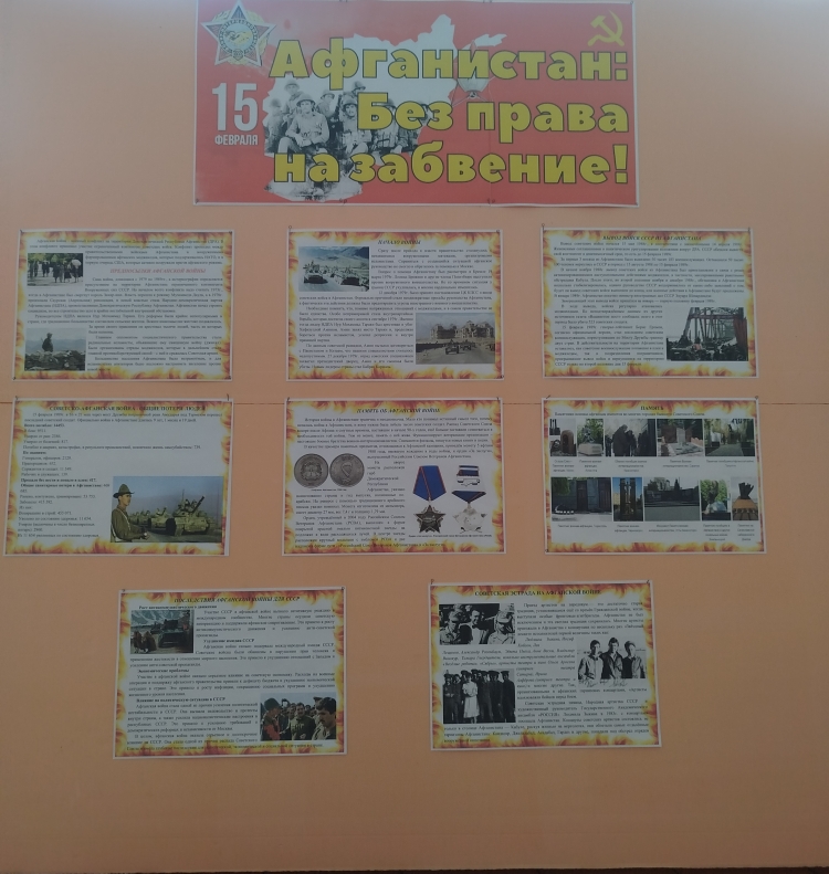 Патриотический час “Без права на забвение”, посвящённый дню вывода советских войск из Афганистана провели для учащихся 5-9 классов учитель Попова Г. Е., зав. Ярославским филиалом МБУК “ЦБ” Попова Ю. А. и председатель ветеранской организации Мехрякова Т. П. Участники мероприятия вспомнили о причинах, которые привели к военному конфликту в Афганистане, познакомились с его основными этапами. Особое внимание было уделено мужеству и героизму, стойкости и благородству советских воинов, проявленных в пекле афганской войны.