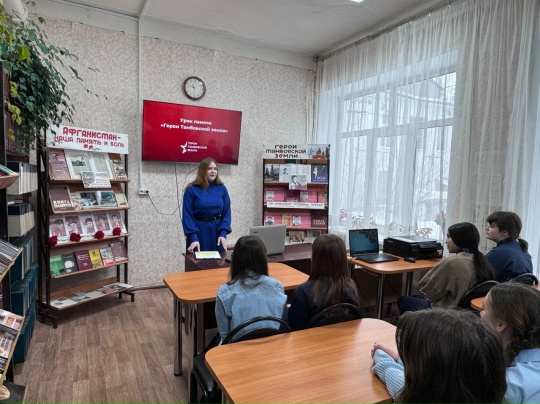 В преддверии праздника библиотекарь Юлия Кременская провела для школьников час мужества «Герои Тамбовской земли». Она рассказала детям о подвигах наших земляков, включая участников специальной военной операции. Школьники слушали внимательно и с интересом.