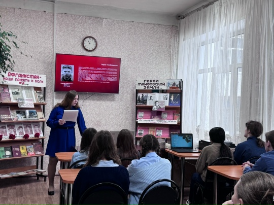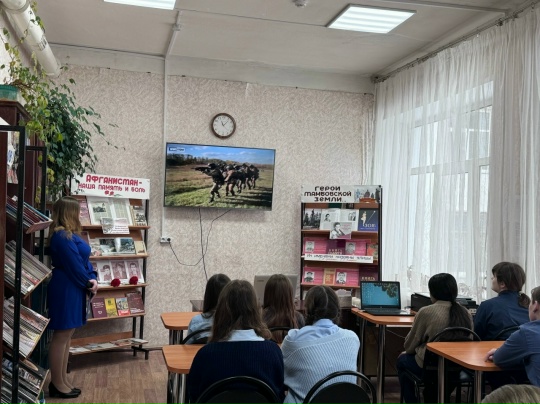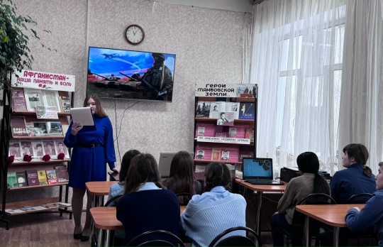 В преддверии праздника библиотекарь Юлия Кременская провела для школьников час мужества «Герои Тамбовской земли». Она рассказала детям о подвигах наших земляков, включая участников специальной военной операции. Школьники слушали внимательно и с интересом.