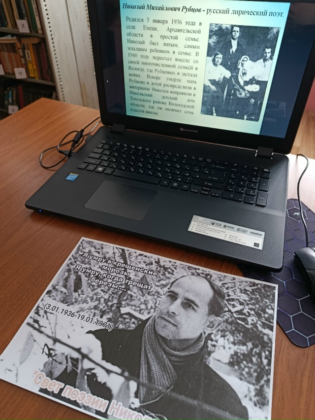 3 января 2026 года исполнилось 90 лет со дня рождения Николая Михайловича Рубцова, который стал достойным продолжателем традиций Тютчева, Фета, Есенин, протянул связующую нить от классической русской литературы к сегодняшнему дню. Как многие талантливые поэты, прожил короткую жизнь, писал душевные, очень личные, порою грустные и откровенные стихи. 130 из них стали песнями и романсами. Произведения Рубцова затрагивают сердца людей, не оставляя никого равнодушным. Негромко, без особых восклицаний ведёт поэт проникновенный разговор с читателями о красоте родной природы, чистоте русской души, сыновней любви к неповторимой и вечной Родине.