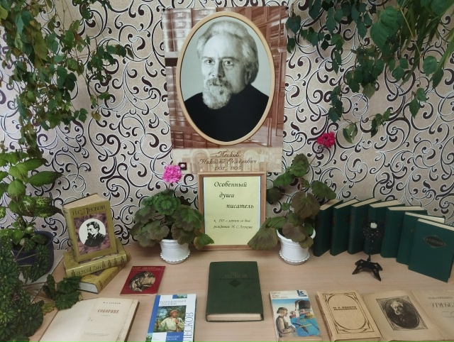В ходе работы выставки заведующая филиалом Карелина Т. А.рассказывает читателям о жизни, творчестве и духовно – нравственном мировоззрении Николая Лескова, показывают самые известные его произведения: «Левша» (легендарный тульский мастер и его трагическая судьба), «Очарованный странник» (одно из вершинных достижений русской прозы), «Леди Макбет Мценского уезда» (страстная и жестокая повесть), «Соборяне»(любимый роман писателя о жизни трёх провинциальных священниках в Старгороде), «Запечатлённый ангел»(тихая светлая повесть про староверов и чудотворную икону), «Тупейный художник» (короткий ,но такой пронзительный рассказ, что после него долго молчишь). Вниманию посетителей представлены книги, содержащие воспоминания современников, критиков и близких о писателе.