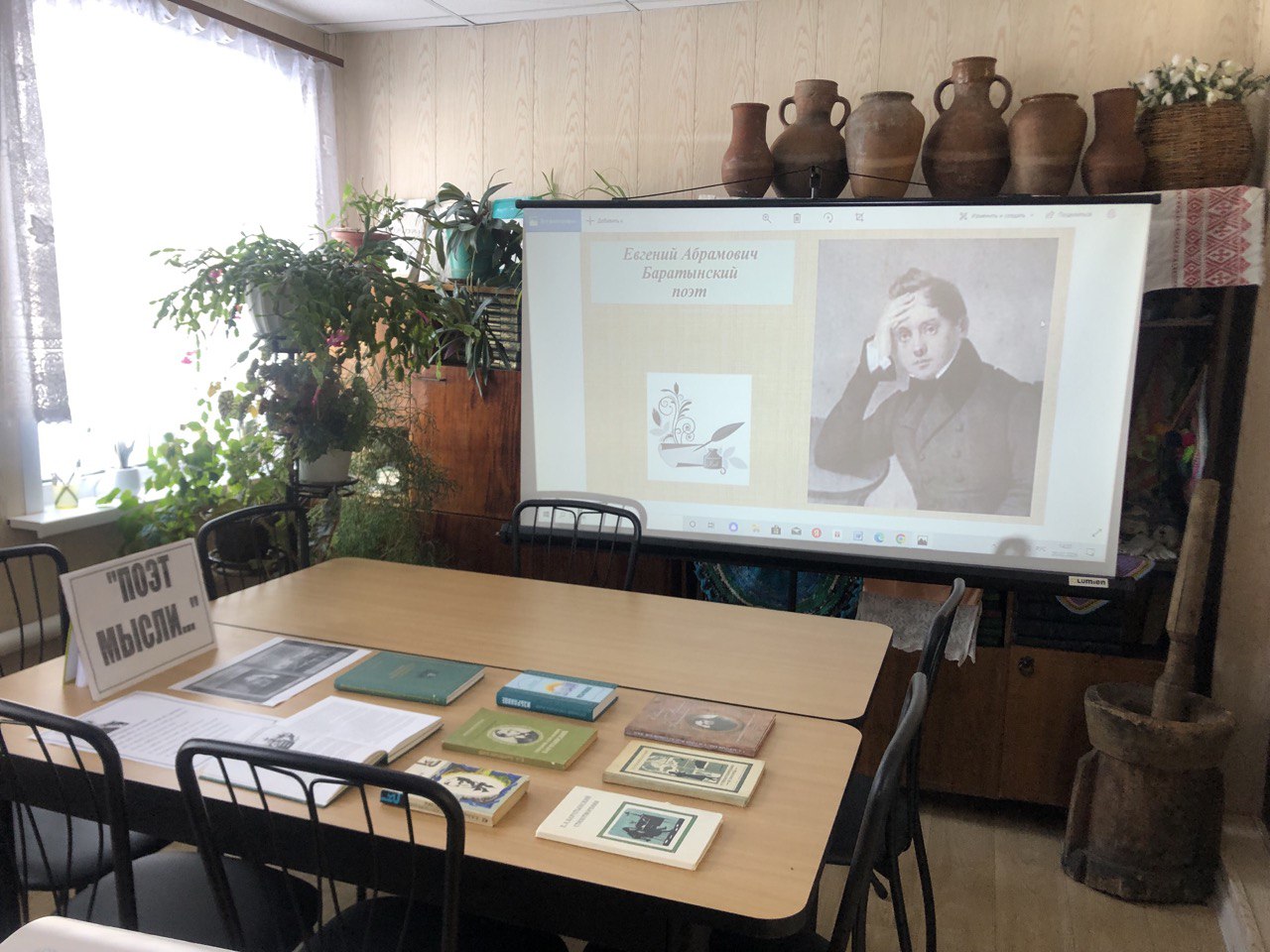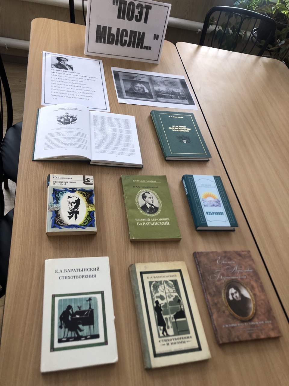 Выставка в Вернадовской сельской библиотеке «Поэт мысли…» посвящена 226-летнему юбилею Евгения Боратынского.