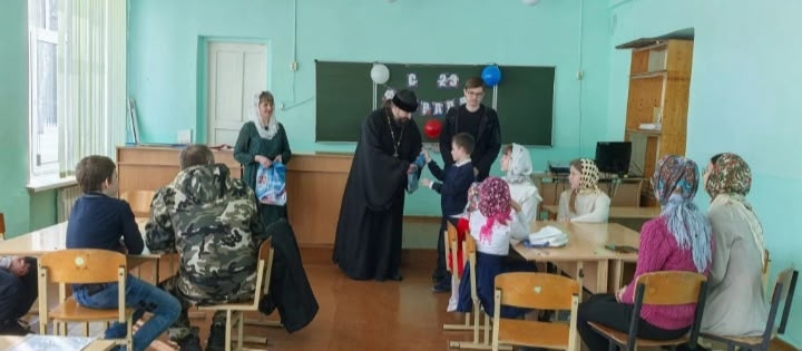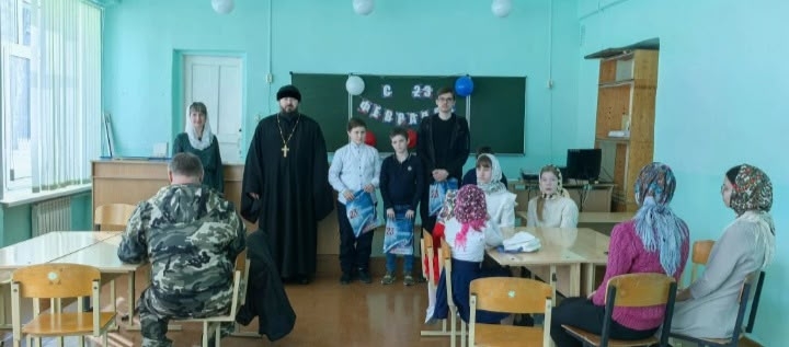Началось мероприятие с поздравления мальчишек, будущих защитников. Настоятель храма иерей Владимир Никифоров пожелал им быть здоровыми, сильными, целеустремлёнными и стать достойными защитниками нашей прекрасной Родины. Много добрых слов прозвучало сегодня в адрес ветерана СВО Стребкова Александра, папы одного из воспитанников воскресной школы.