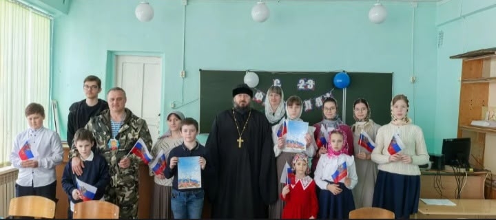 22 февраля в воскресной школе храма Архангела Михаила села Новоюрьево совместно с сельской библиотекой прошло праздничное мероприятие «Патриоты России», посвящённое Дню защитника Отечества.
