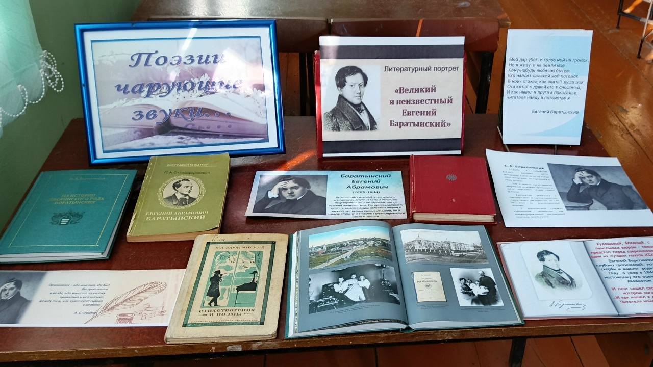 «Поэзии чарующие звуки» – так называется книжная выставка, посвященная Евгению Абрамовичу Боратынскому, русскому поэту начала XIX века, развернутая в Гагаринском сельском филиале. Евгений Боратынский оставил яркий след в истории русской литературы благодаря своему уникальному стилю и глубоким философским размышлениям. В своих стихах он сумел соединить истину чувств с удивительной точностью мысли.