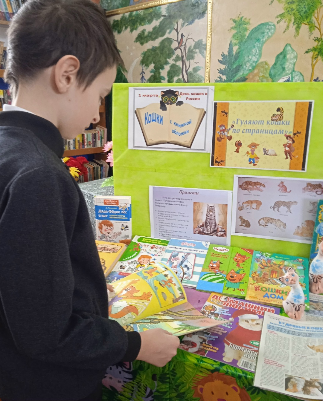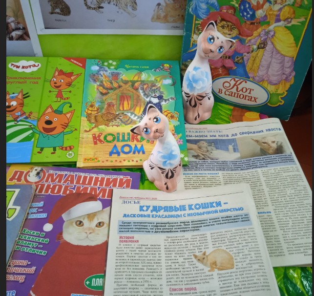 Также на выставке представлены и художественные книги, где главные герои-коты, кошки, котята.