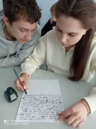 Викторина включала в себя разнообразные вопросы по различным жанрам литературы: от классики до современности, от поэзии до прозы. Учащиеся рассматривали фото рукописей, написанных пером и сами попробовали написать отзыв о любимой книге чернильной ручкой.